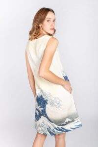 In addition to the eco-friendliness of the fabric, wearing a dress with The Great Wave is also a statement piece. The iconic artwork is instantly recognizable and is sure to attract attention wherever you go. By wearing a dress with The Great Wave, you’re showing your appreciation for Japanese art and culture.