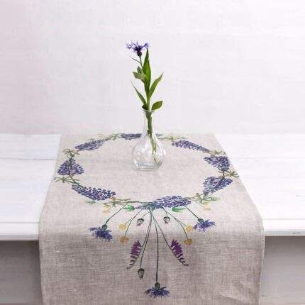 Table runner, cornflowers, 55″ x 20″, beige linen, linen tablecloth, cloth napkins, wedding gift, home decor, PR0898