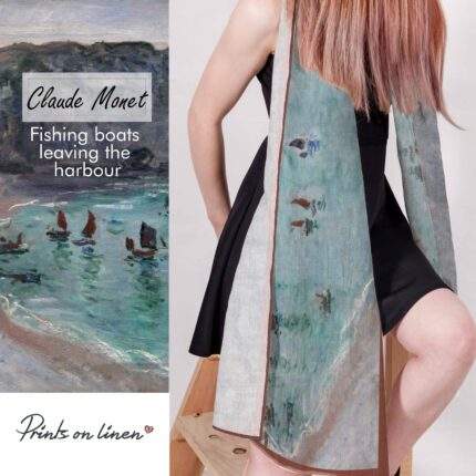 Linen scarf, Claude Monet, Fishing Boats Leaving the Harbour, linen shawl, vintage scarf, gift for her, boho scarf, gift for mom, bridesmaid gift, PR2570