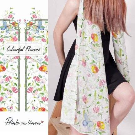 Linen scarf, Colourful Flowers, blanket scarf, linen shawl, vintage scarf, gift for her, boho scarf, gift for mom, bridesmaid gift, PR2568