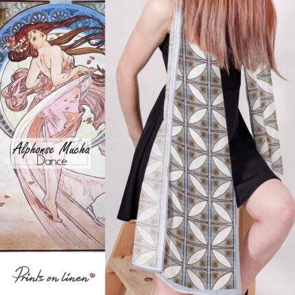 Linen scarf, Alphonse Mucha, Dance, blanket scarf, linen shawl, vintage scarf, gift for her, boho scarf, gift for mom, bridesmaid gift, PR2566