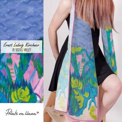 Linen scarf, Ernst Ludwig Kirchner, In Serdig Valley, blanket scarf, linen shawl, vintage scarf, gift for her, boho scarf, gift for mom, bridesmaid gift, PR2564