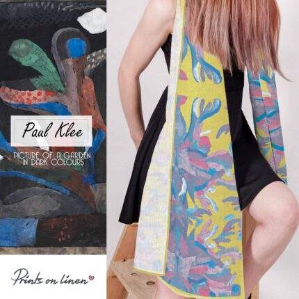 Linen scarf, Paul Klee, Picture of a Garden in Dark Colours, blanket scarf, linen shawl, vintage scarf, gift for her, boho scarf, gift for mom, bridesmaid gift, PR2550