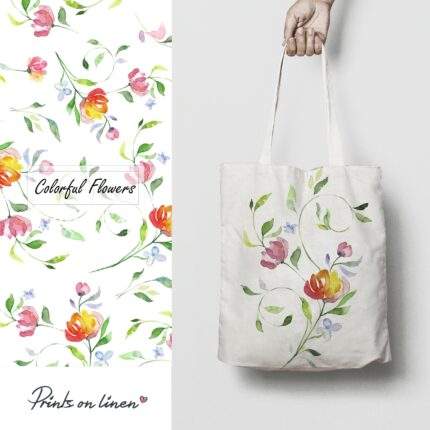 Linen Tote Bag, Colourful Flowers, Tote bag, 100% linen, Made in Lithuania, Hand Made Tote, Shopping bag, PR2425
