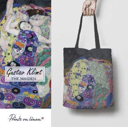 Linen Tote Bag, Gustav Klimt, The Maiden, Tote bag, 100% linen, Made in Lithuania, Hand Made Tote, Shopping bag, PR2423