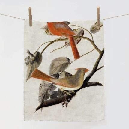 Kitchen towel, linen towel, Cardinal Grosbeak (1811), John James Audubon, dish towel, 100% linen, custom print towel, Autumn towel, PR0309