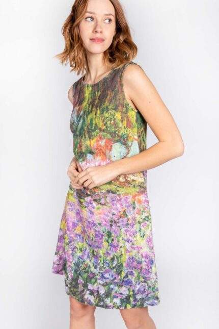 Linen dress, Claude Monet, Garden at Giverny, 100% linen, sleeveless dress, bohemian dress, PR2039
