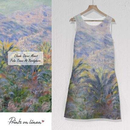 Linen dress, Claude Oscar Monet, Palm Trees at Bordighera, Sleeveless, 100% linen, Summer dress, PR1670
