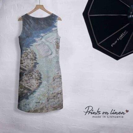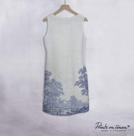 Linen dress, Frederik van Frytom, Plaat. Beschildered Met Een Rivierlandschap Met Kasteel, Sleeveless, 100% linen, Summer dress, PR1676
