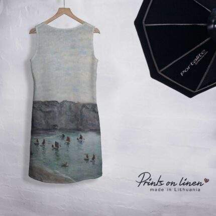 Linen dress, Claude Monet, Fishing Boats Leaving the Harbour, Sleeveless, 100% linen, Summer dress, PR1658