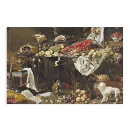 100 % Linen towel, Banquet Still Life, Adriaen van Utrecht, Linen towel with printed Classical Artwork, Tea towel, Kitchen towel, PR3009