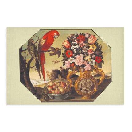 100 % Linen towel, Flowers and Parrots, Tekijä Ei Tiedossa, Linen towel with printed Classical Artwork, Tea towel, Kitchen towel, PR3013