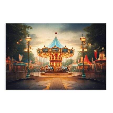 100 % Linen towel, Fun Carousel Park Amusement Park, Linen towel with printed Classical Artwork, Tea towel, Kitchen towel, PR3004