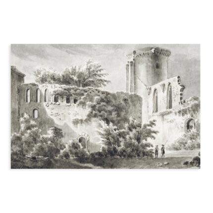 100 % Linen towel, View of Courtyard of Château de Botwel, Linen towel with printed Classical Artwork, Tea towel, Kitchen towel, PR3017