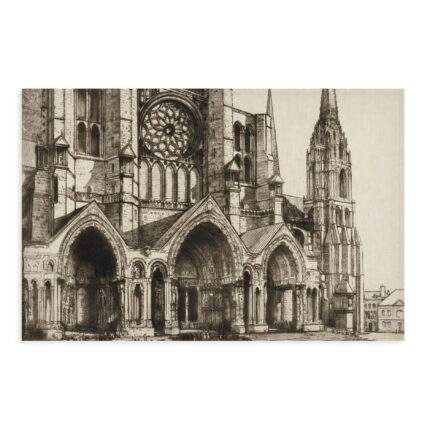 100 % Linen towel, Old View of Chartres Cathedral France, Linen towel with printed Classical Artwork, Tea towel, Kitchen towel, PR3014