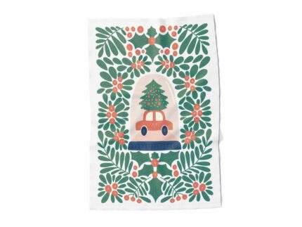 Linen towel, Modern Christmas, Holiday car, 100% linen, PR3337