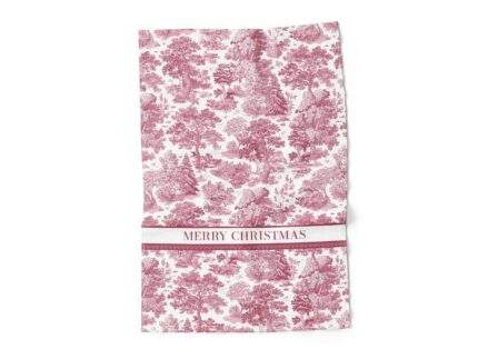 Linen towel, Toile Christmas, Burgundy, 100% linen, PR3351