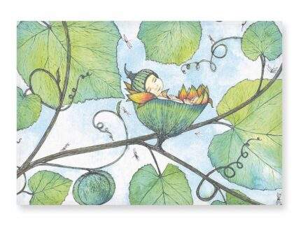 Linen wall tapestry, The Princess and the Pea, 45 x 70 cm, tapestry with bamboo holder, PR2945
