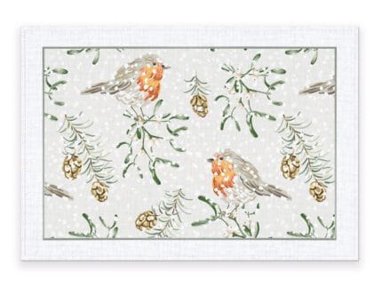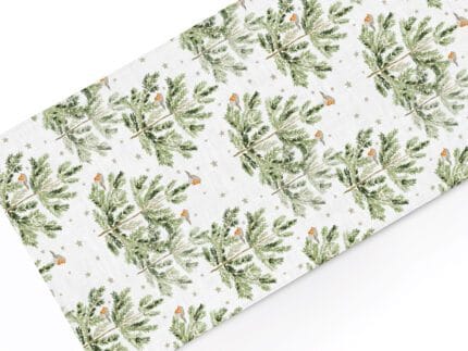 Table runner, Robin Birds On Pine Trees, 100% linen, PR4061
