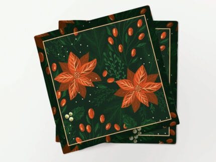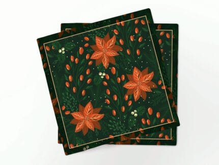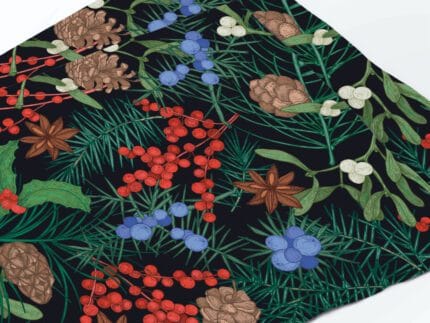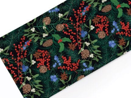 Table runner, Midnight Poinsettia, 100% linen, PR4049