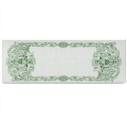 Table runner, Owen Jones, Linen table runner, Toile de jouy, Green toile de jouy, mint background, PR0931
