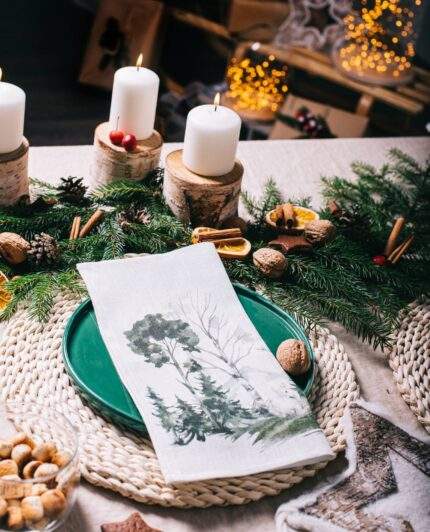 Napkins set, Forester’s Hut, linen napkins, Holiday decor, Christmas napkins, Christmas decor, 100% linen, Yule napkins, Winter napkins, PR0350