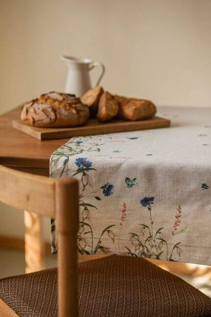 Linen table runner, Cornflowers, party table runner, 100% linen, table runner, PR0643