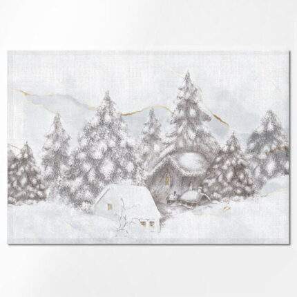 Placemats set, Forester’s Hut, Christmas decorations, Christmas gift, Holiday decor, Christmas print, 100% linen, Christmas Ornaments, PR0298