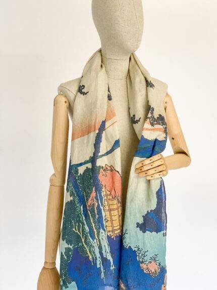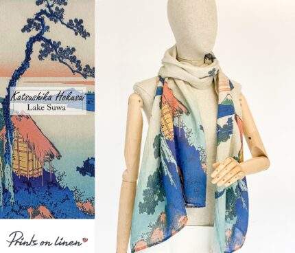 Scarf, Linen scarf, Hokusai, Lake Suwa, Japan art, Wabi sabi, Vintage japan art, PR0558