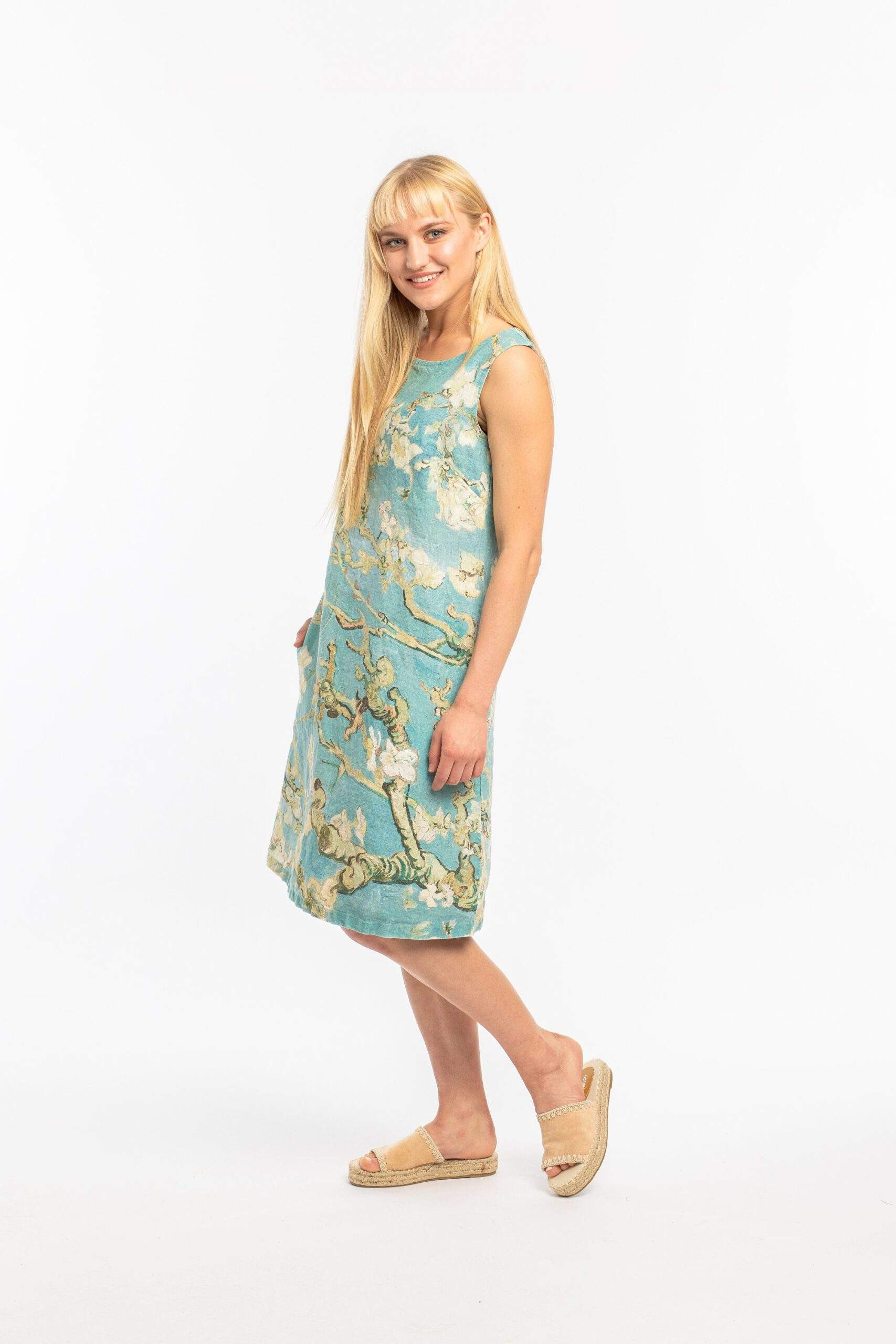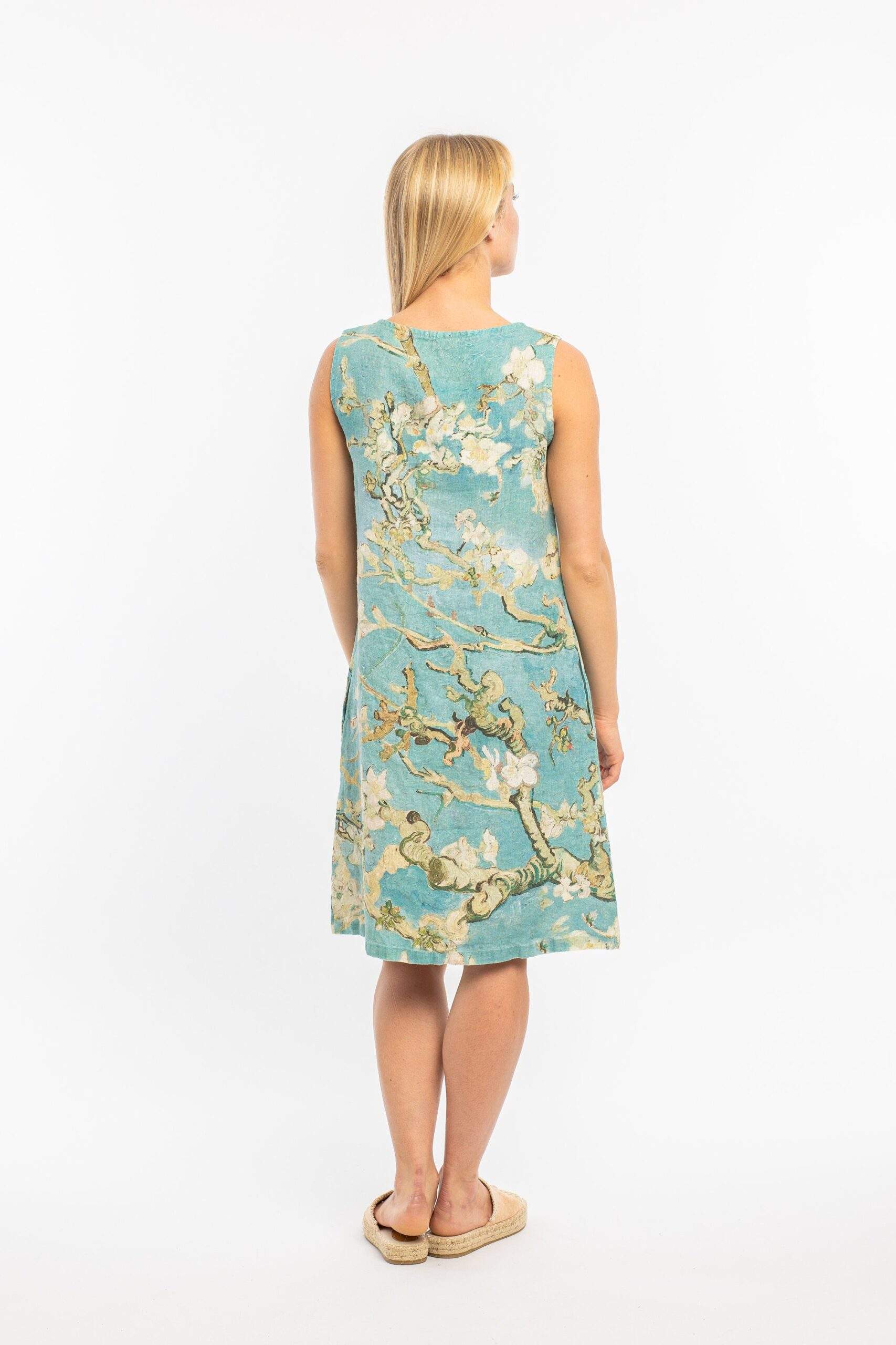 Linen women “Almond Blossom” Vincent van Gogh. This dress has two deep pockets.