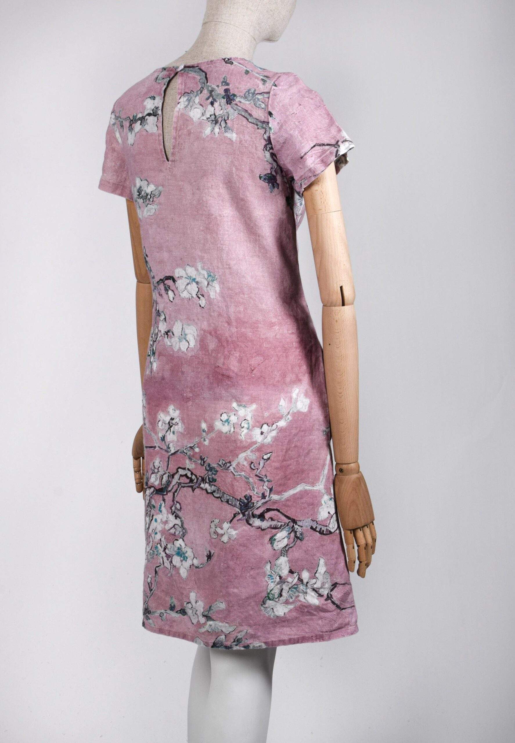 Almond Blossom, Vincent van Gogh, Linen women dress, linen dress, 100% linen, loose dress, summer dress, plus size dress, blush pink dress, PR0510