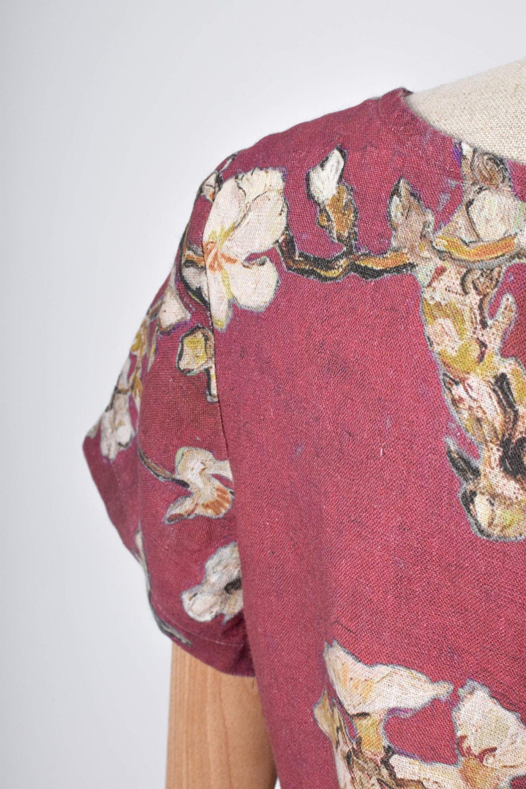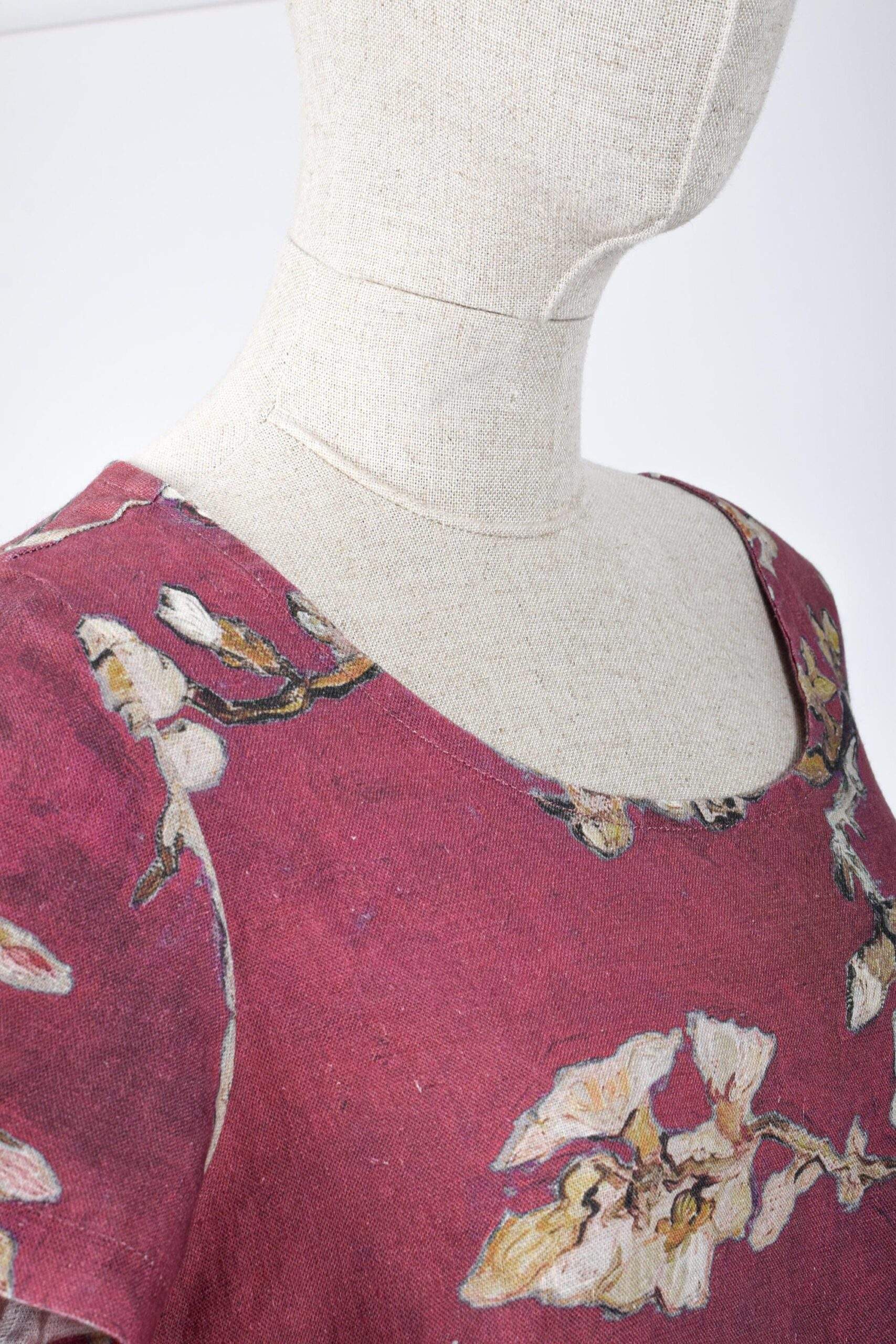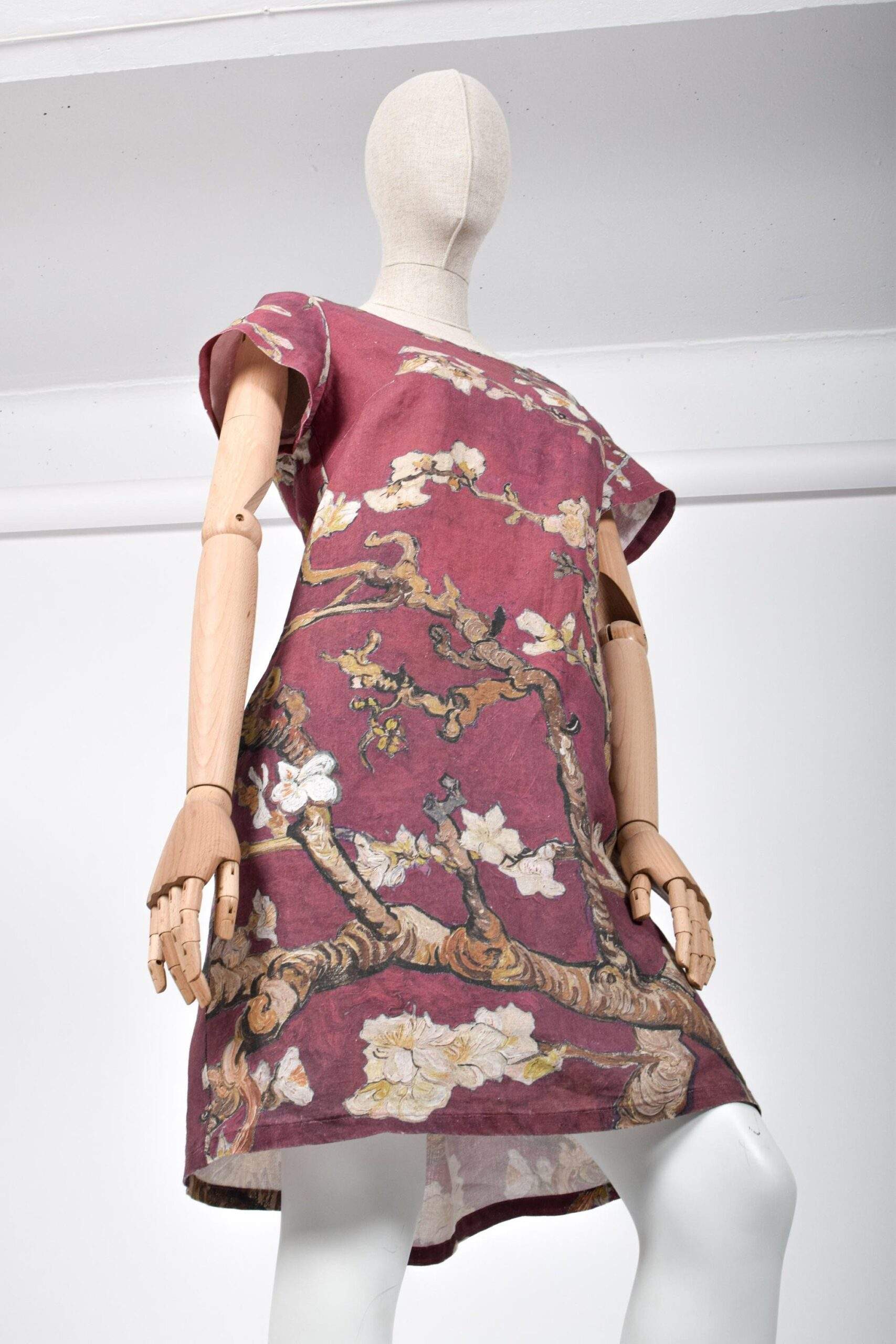 Linen dress of Vincent Van Gogh Almond Blossom (wine red colour).