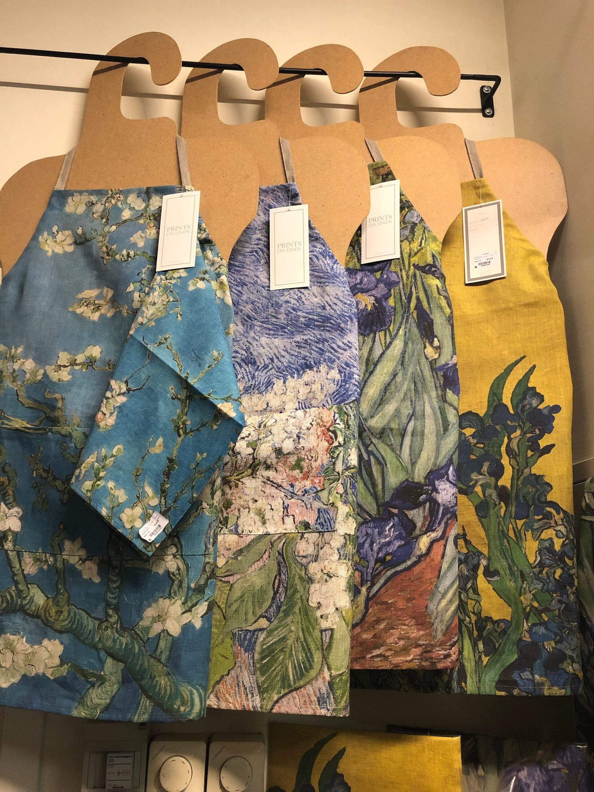 Linen Apron, Vincent Van Gogh “Irises” print. 100% organic linen fabric. Free size linen apron with pocket. Cross back apron. Chef apron, personalized apron, custom apron.