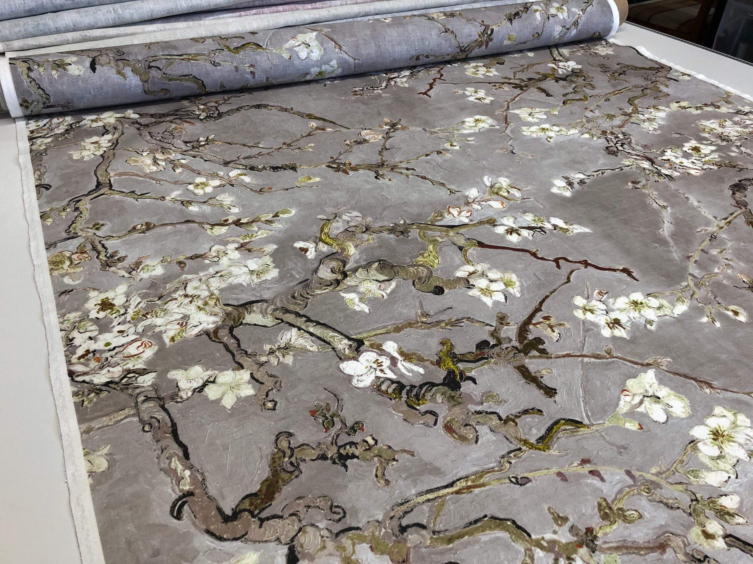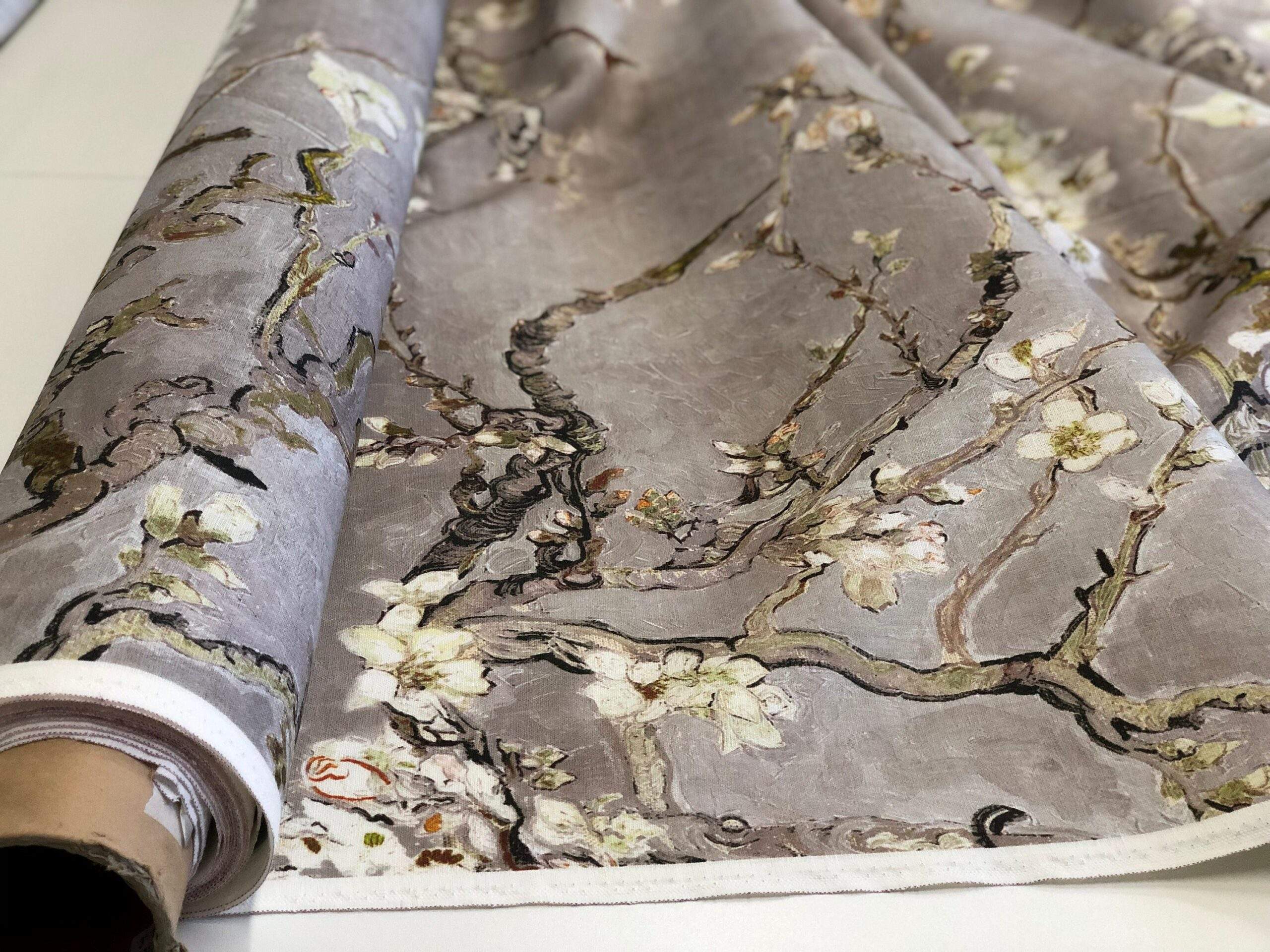Ash Grey fabric, Vincent van Gogh, Linen fabric, Almond Blossom, Fabric by yard, PR0993
