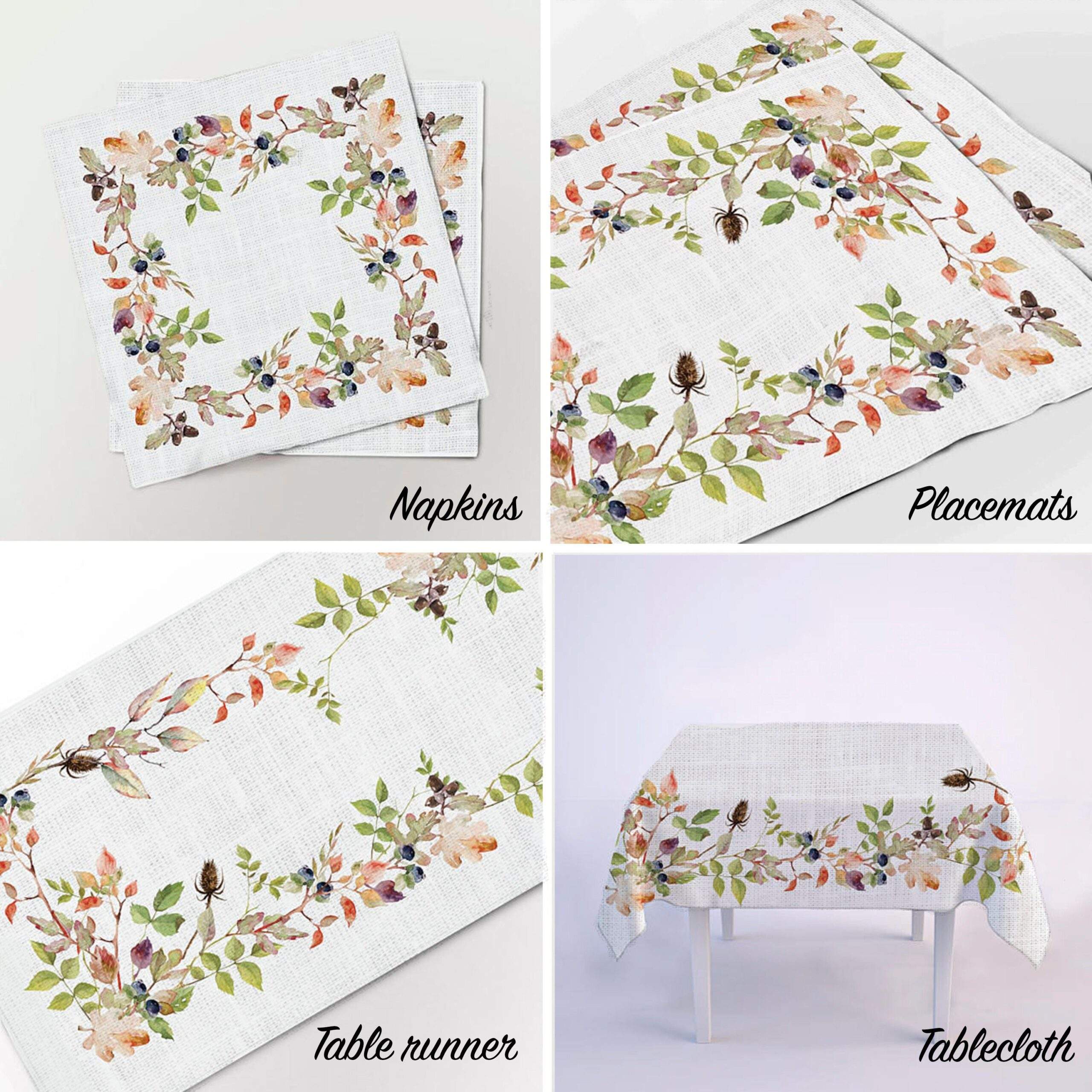 This tablecloth can be order with matching pattern linen table runners, placemats or napkins sets.