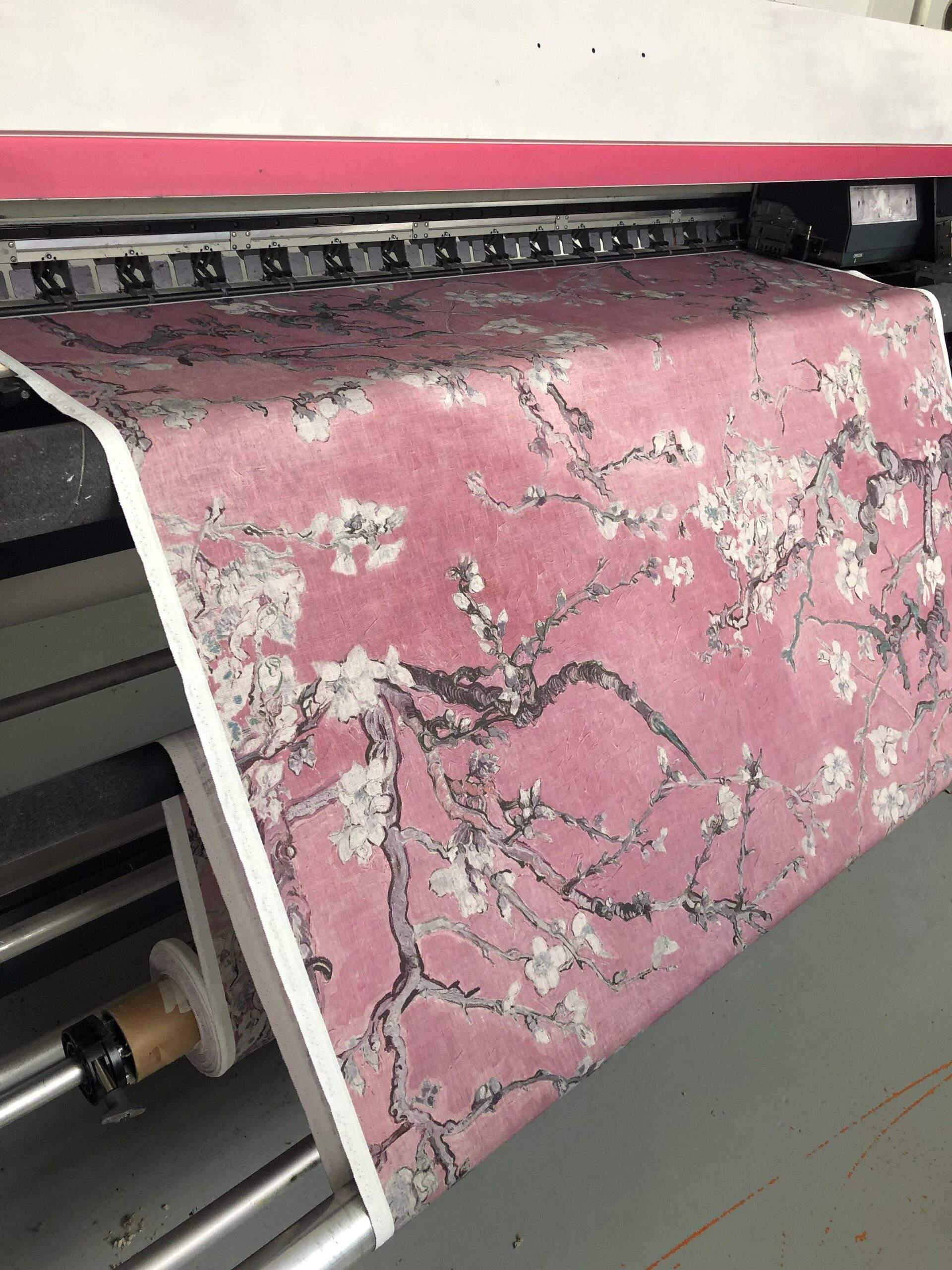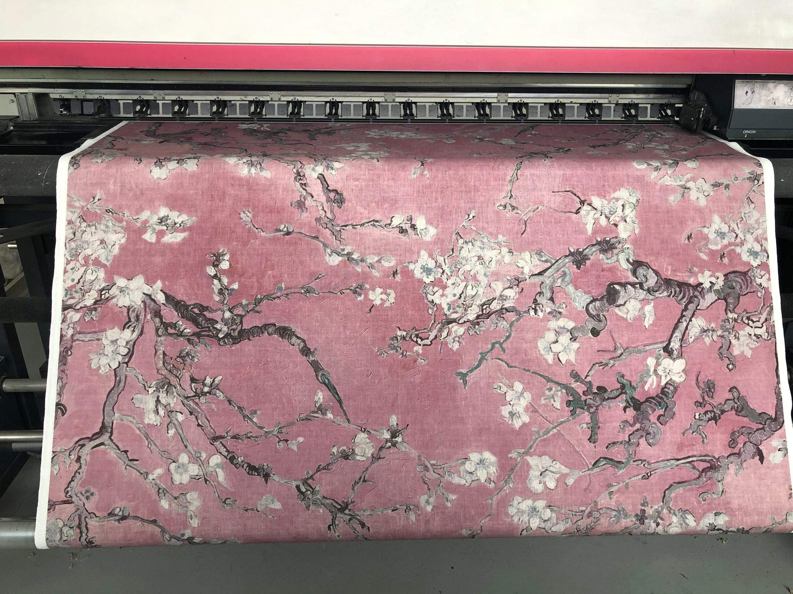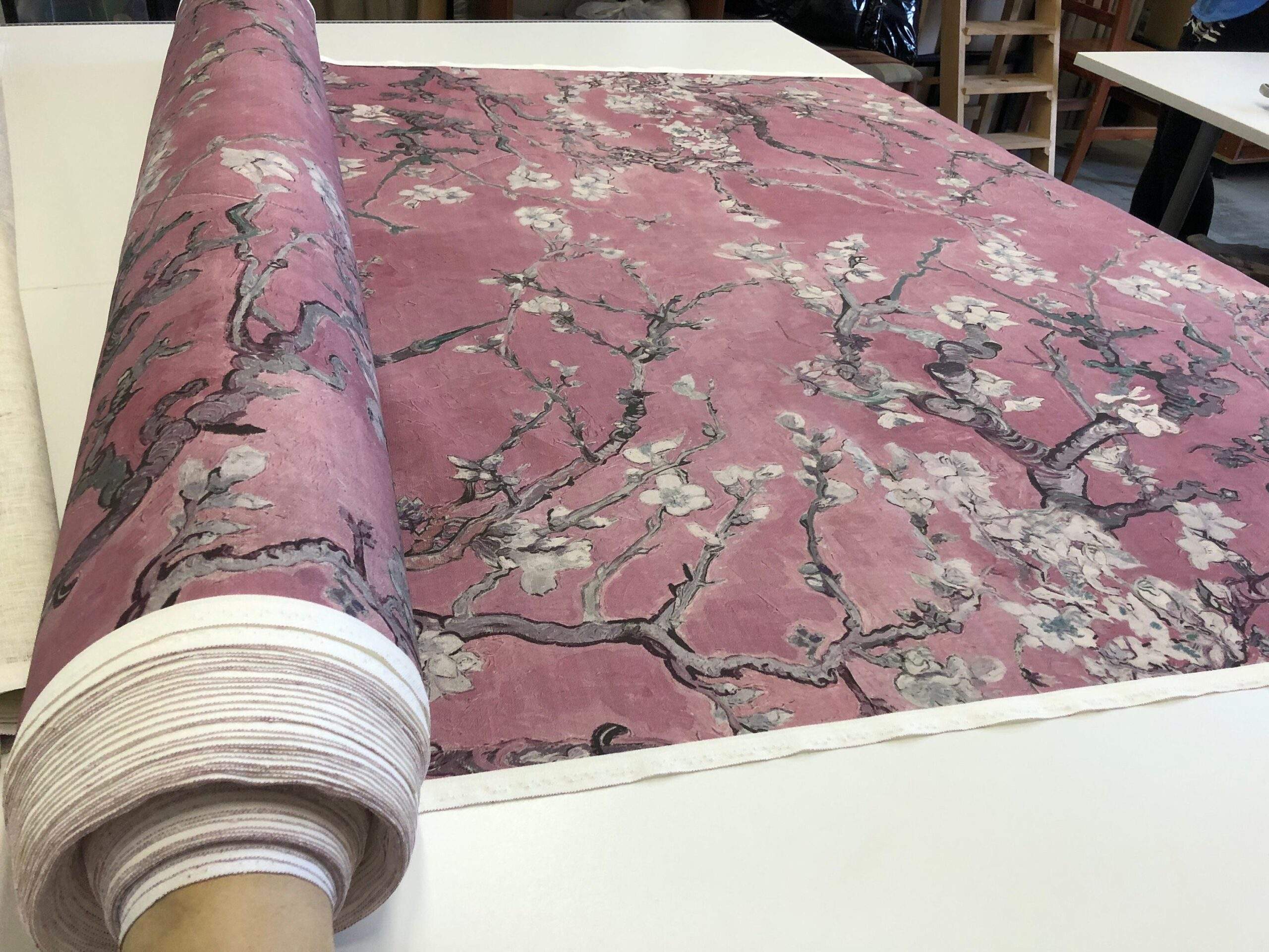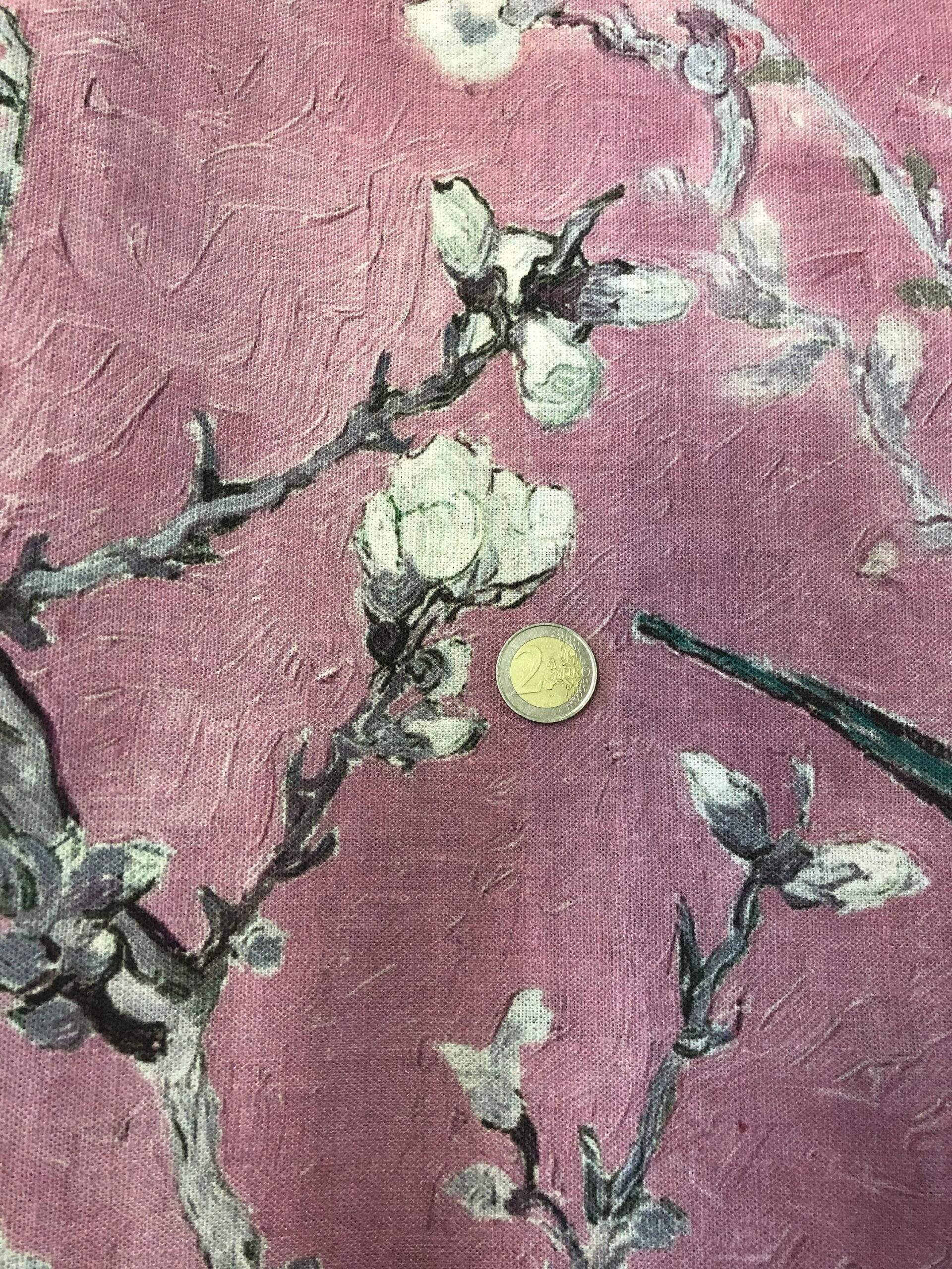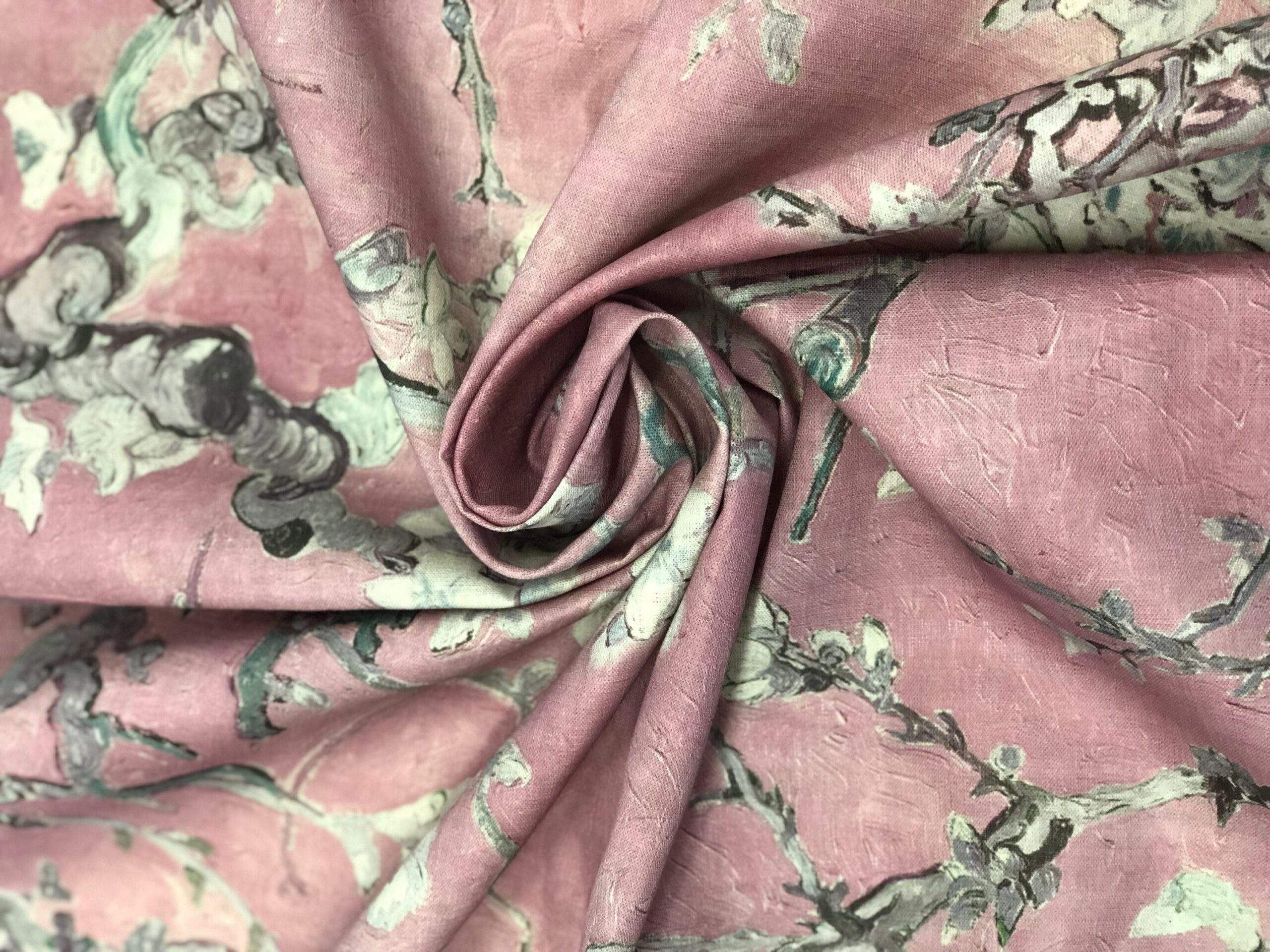 Linen fabric Vincent van Gogh “Almond Blossoms”. Cherry blossom pink, candy pink colour.