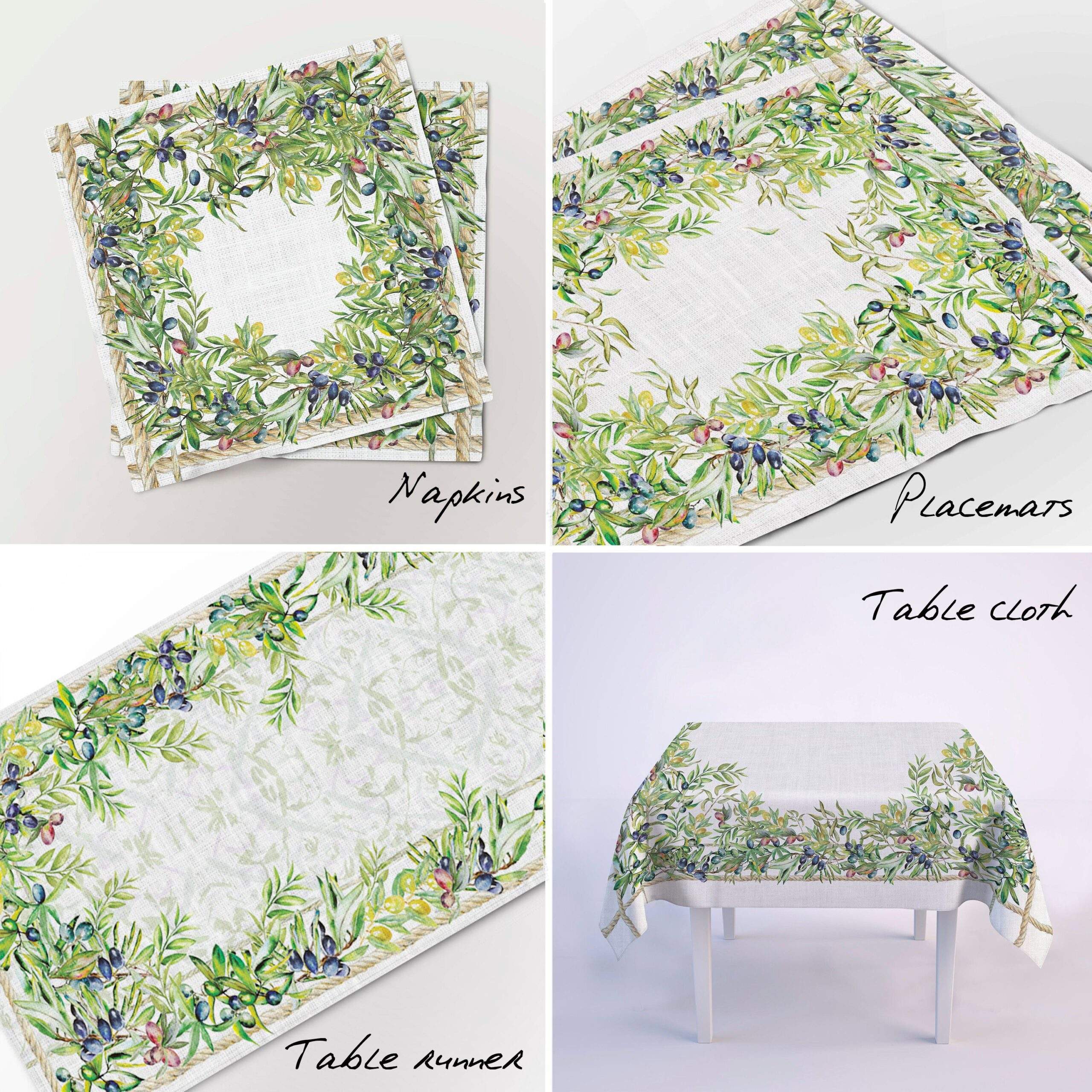 Napkins set “Olives”. Housewarming gift, home decor, farmhouse decor. These napkins can be ordered with matching linen table runner, placemats or tablecloths (different size).