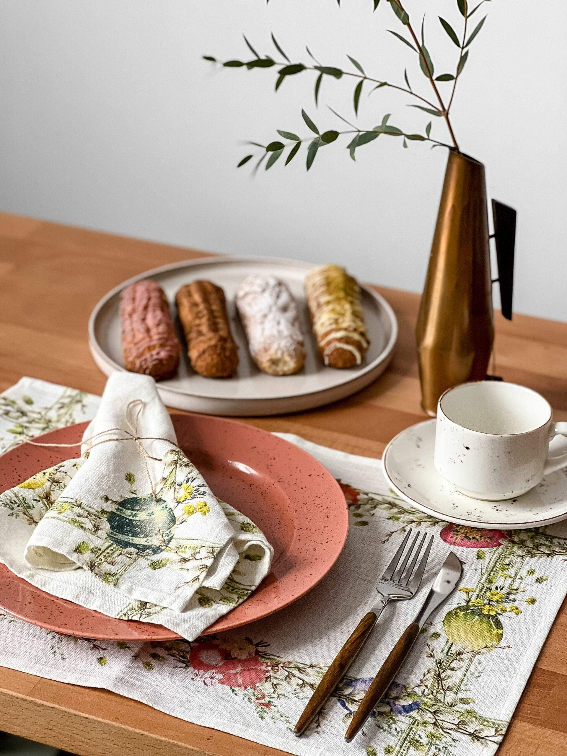 Placemats set, Easter decor, Parrot Tulips, Linen placemats, Easter gift, Flower table decor, 100% linen, hand made placemats set, PR0183