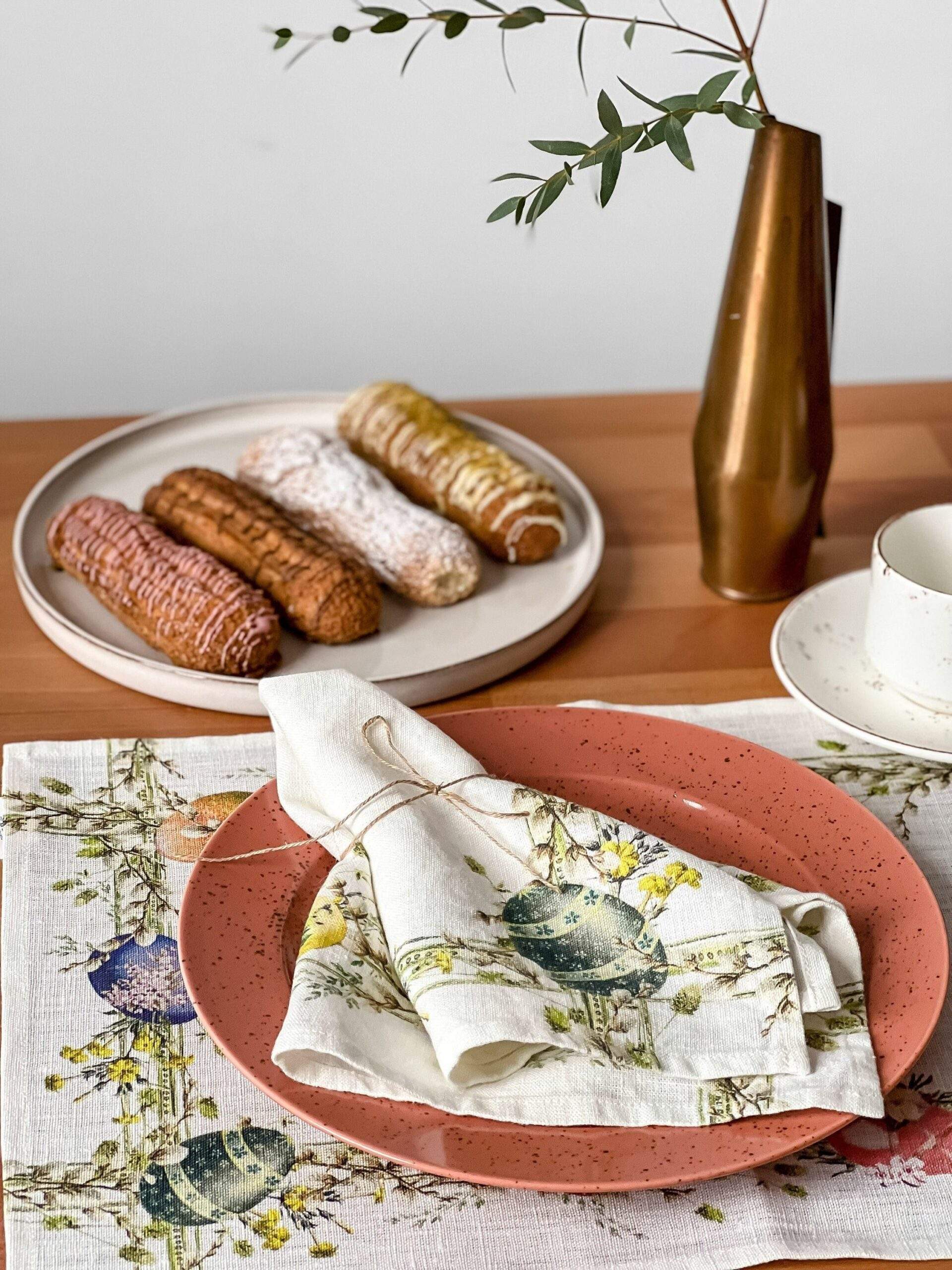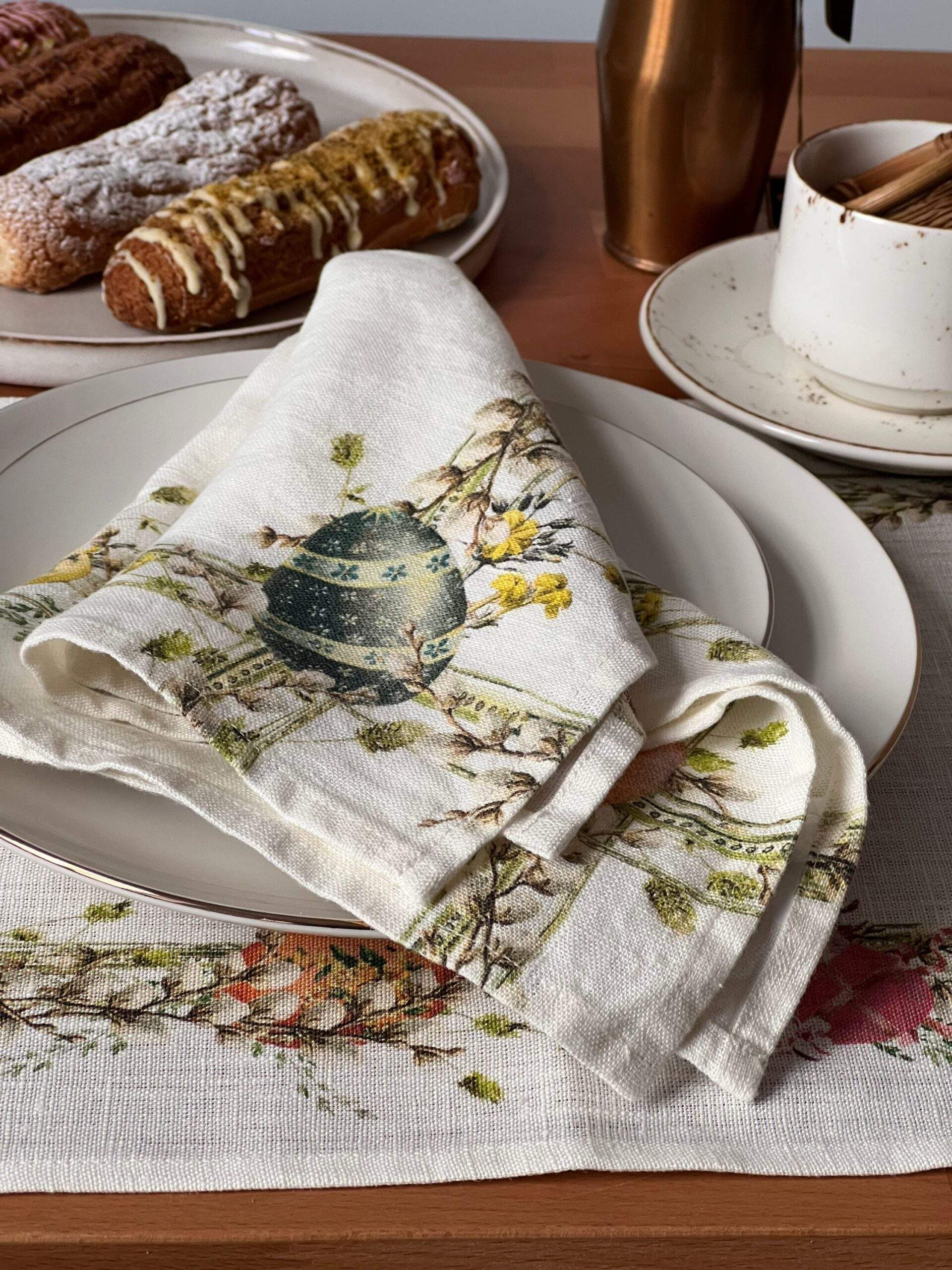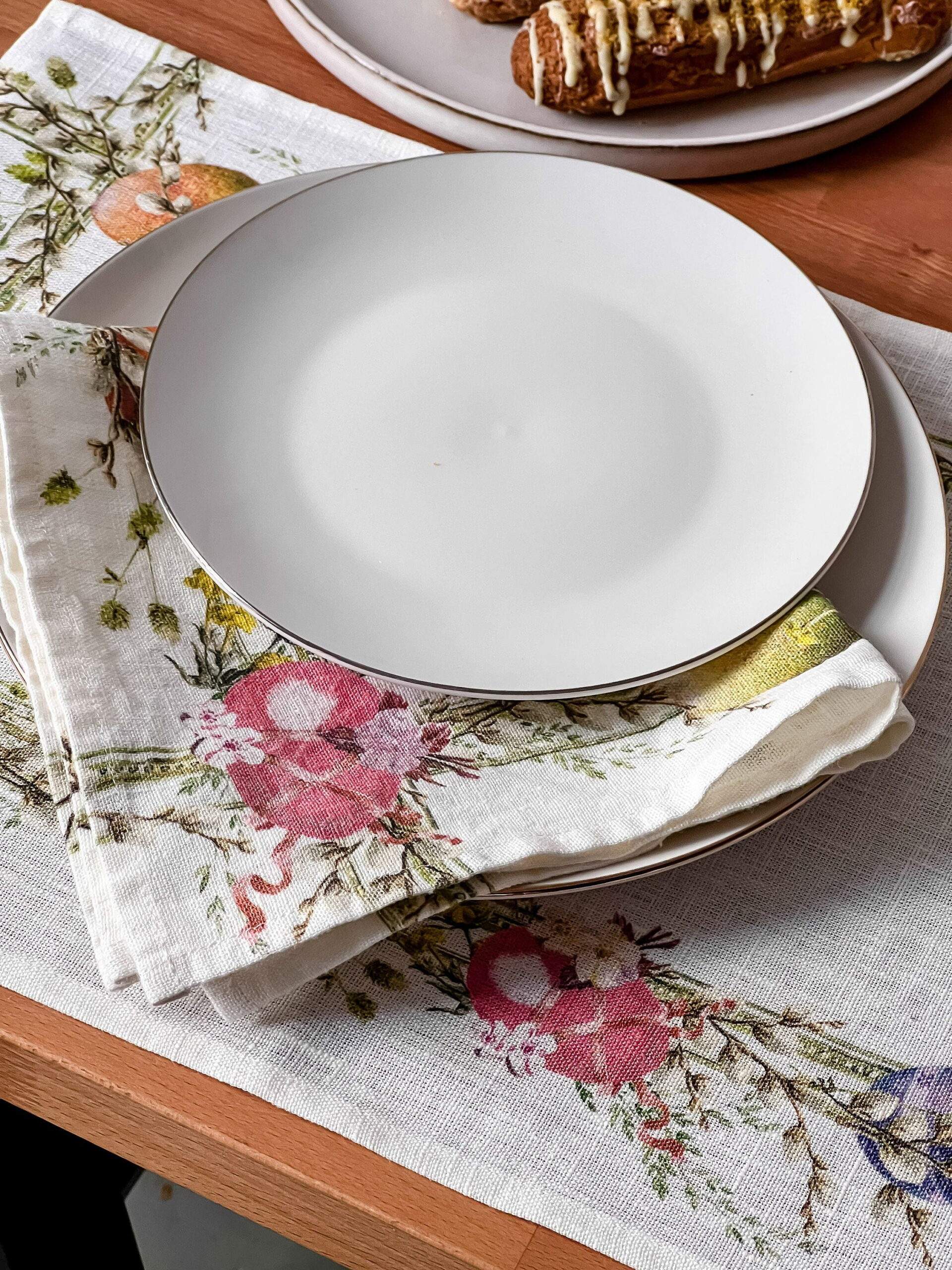 Easter napkins “Easter Wreath”. Linen napkins set made of natural white, 100% linen fabric.