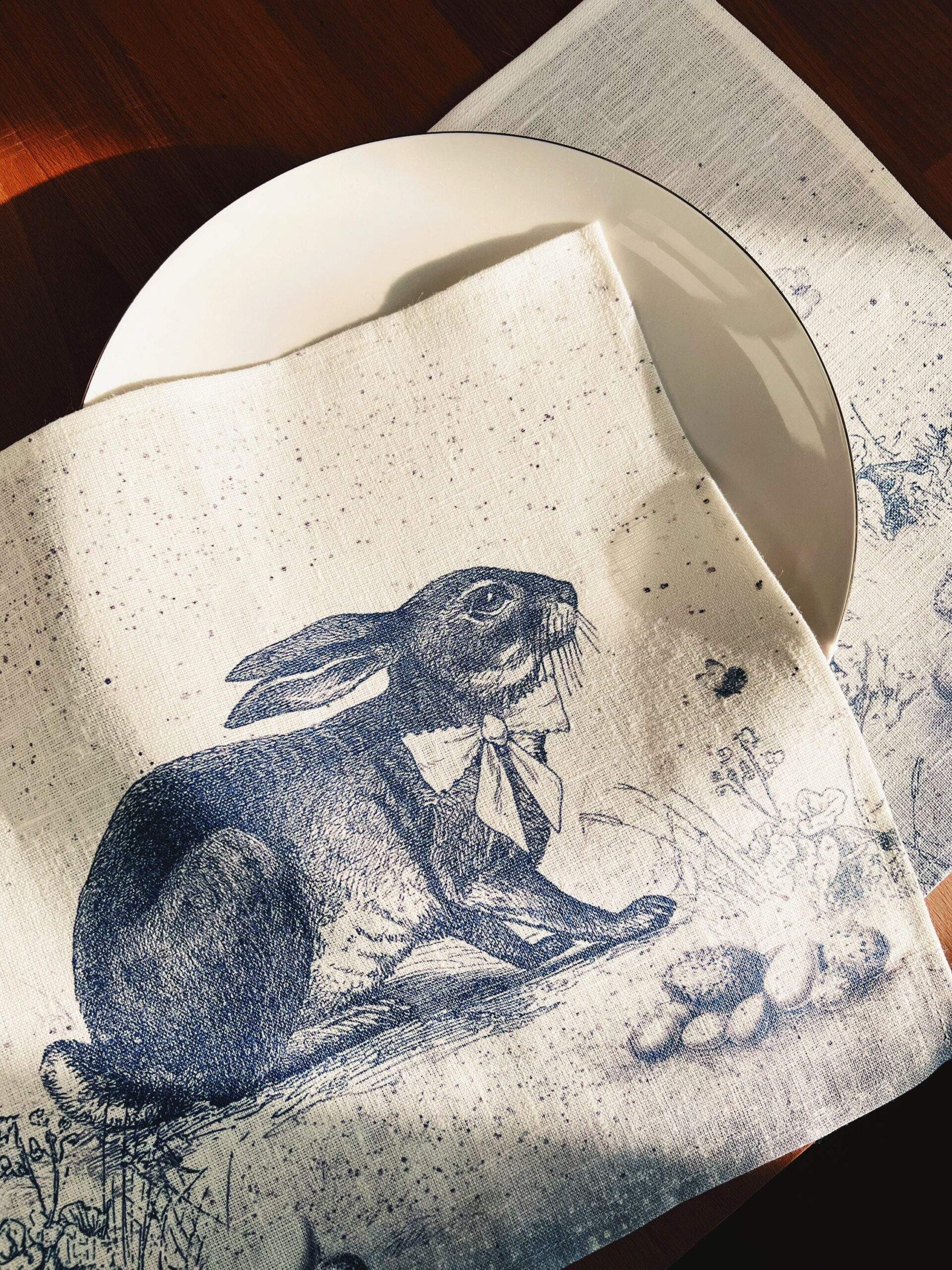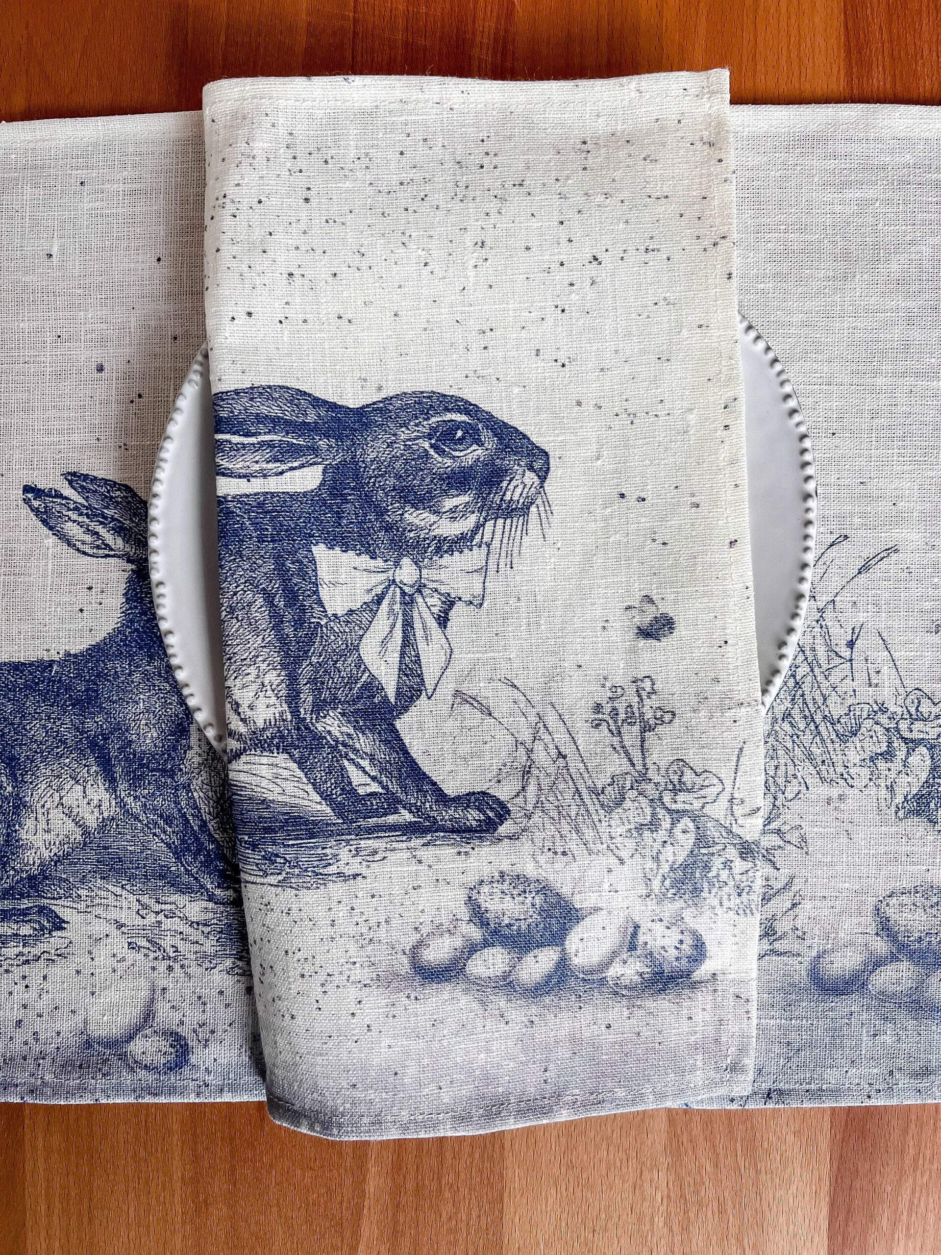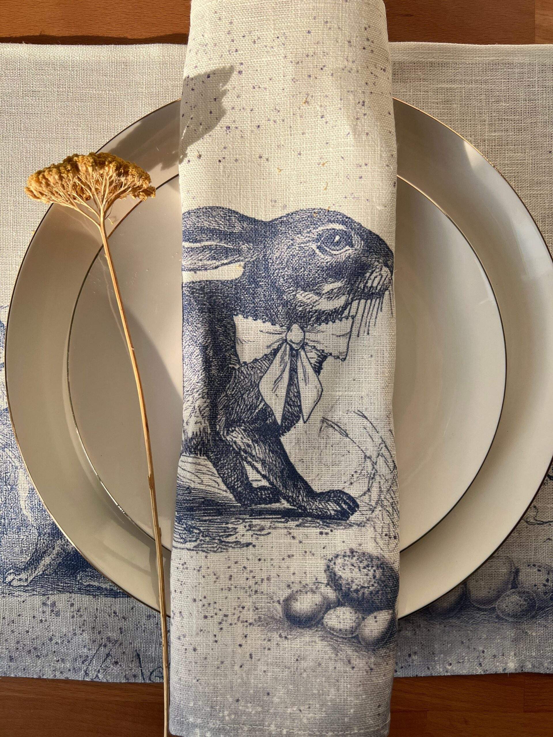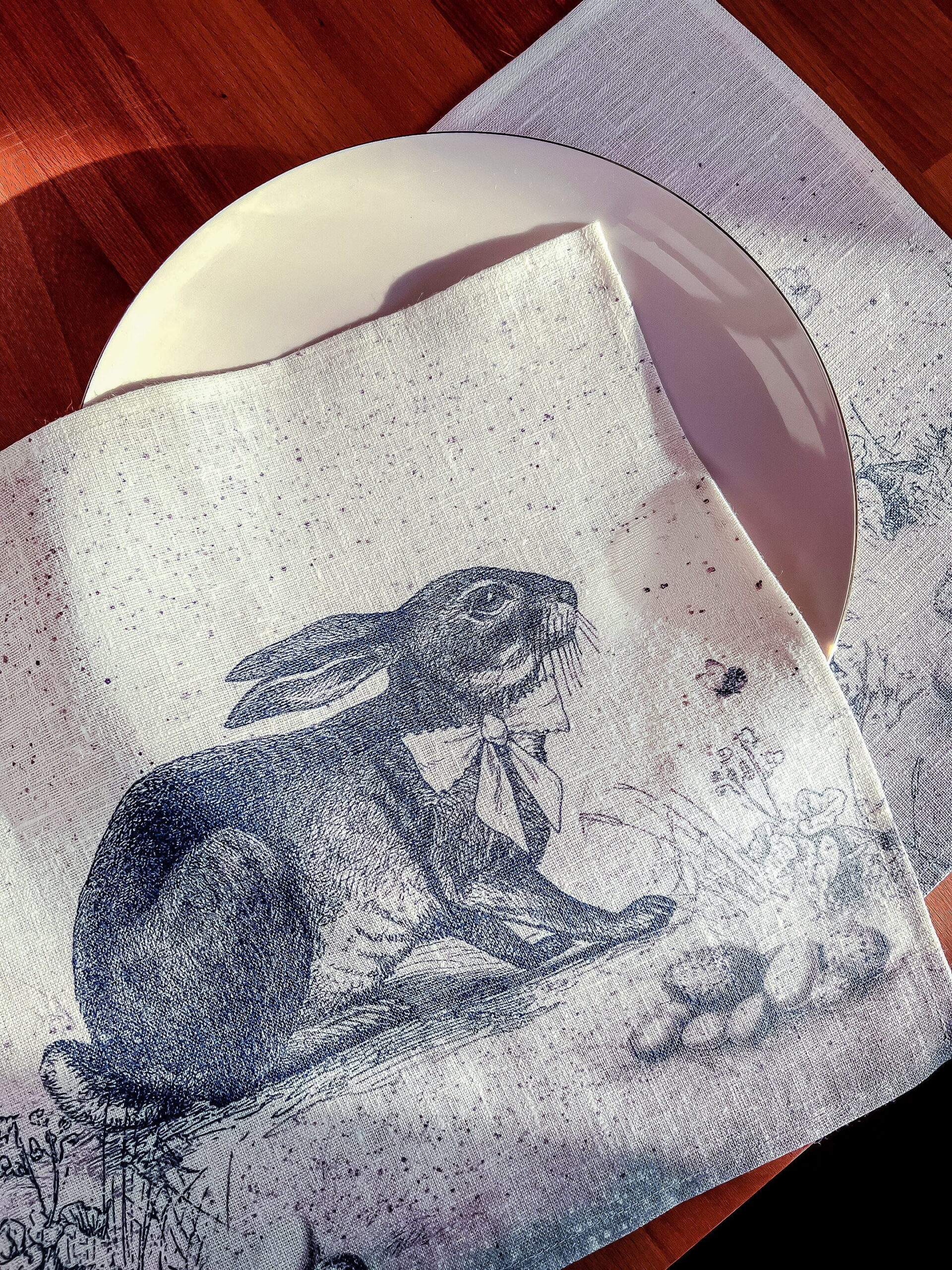 Napkins set “Toile de Jouy Rabbit”. Hand made in Lithuania.
