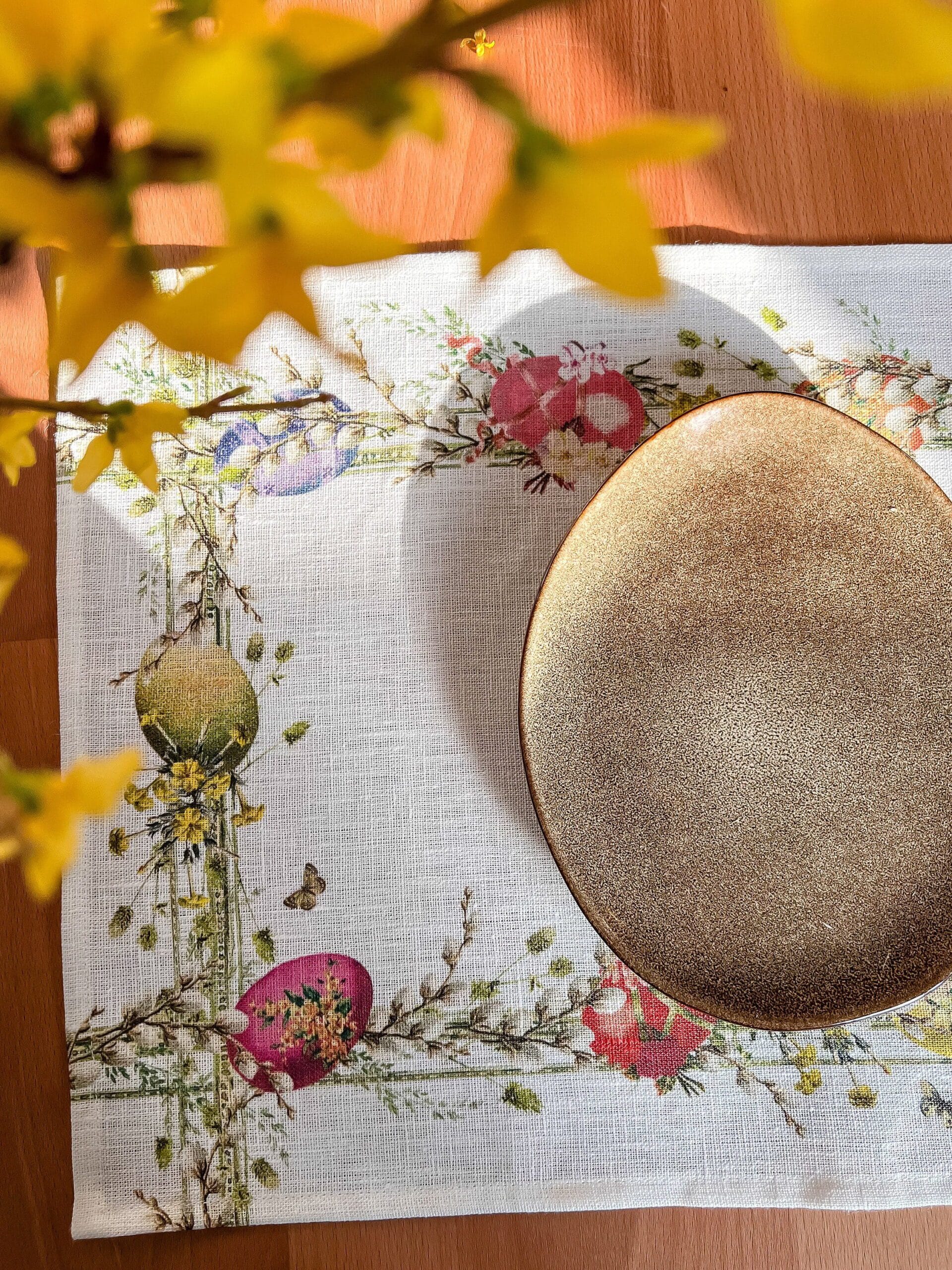 Easter placemats set “Easter Wreath”. We have matching linen napkins, table runner and tablecloth.