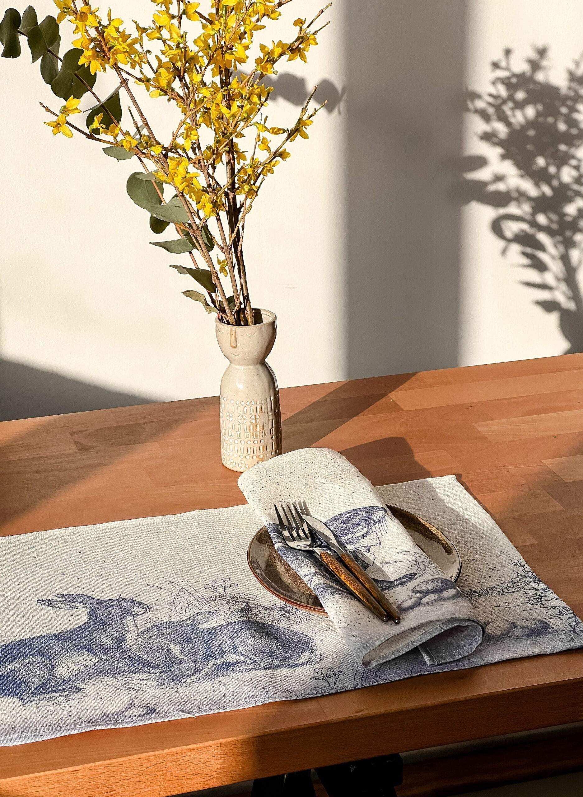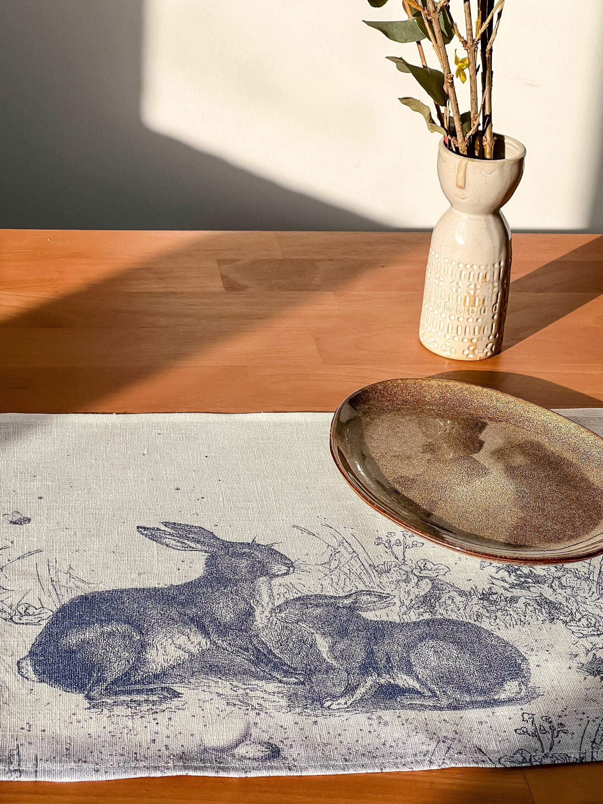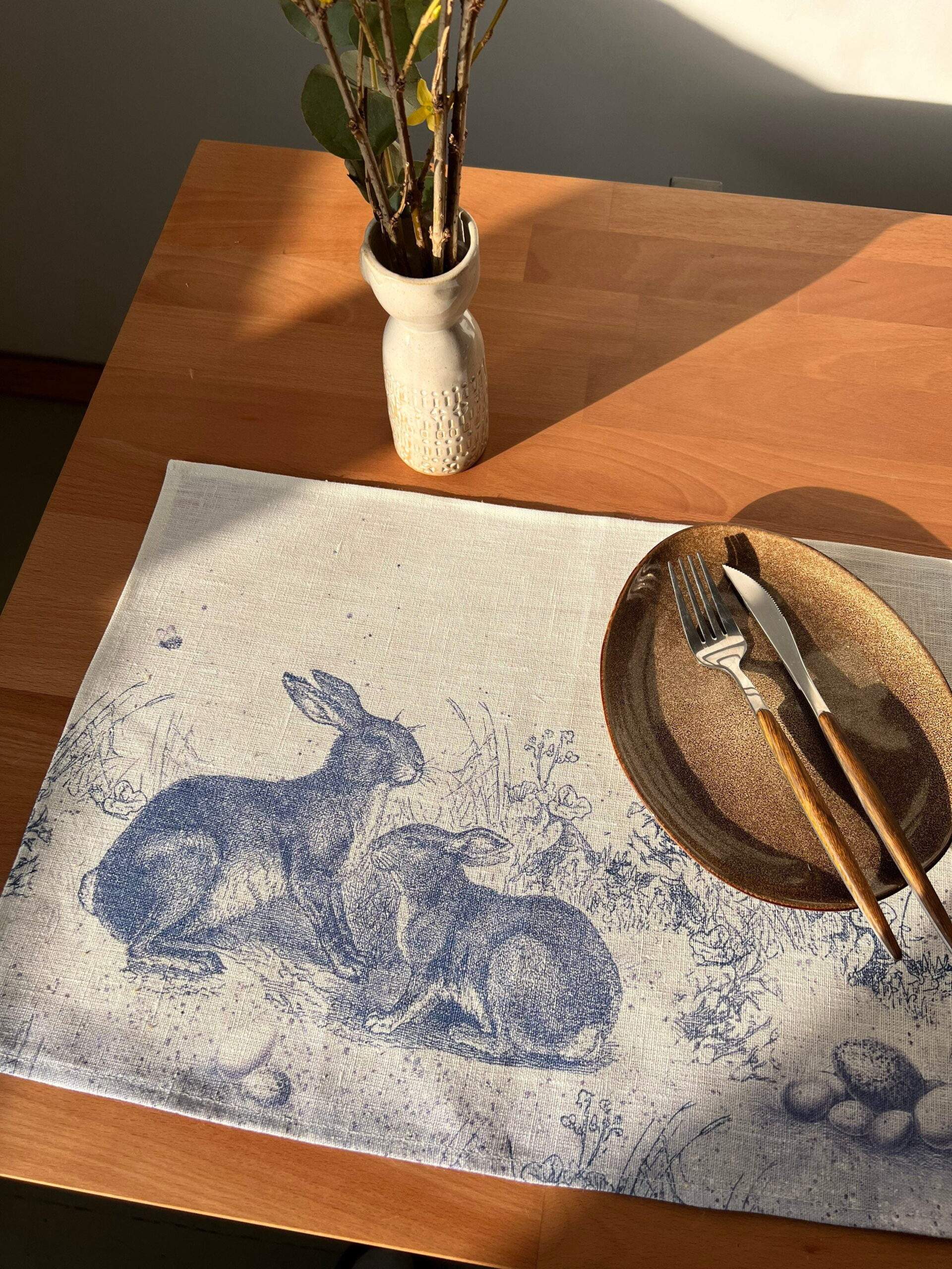 Easter placemats set “Toile de Jouy Rabbit”. Easter decor. We have matching linen napkins, table runner and tablecloth.