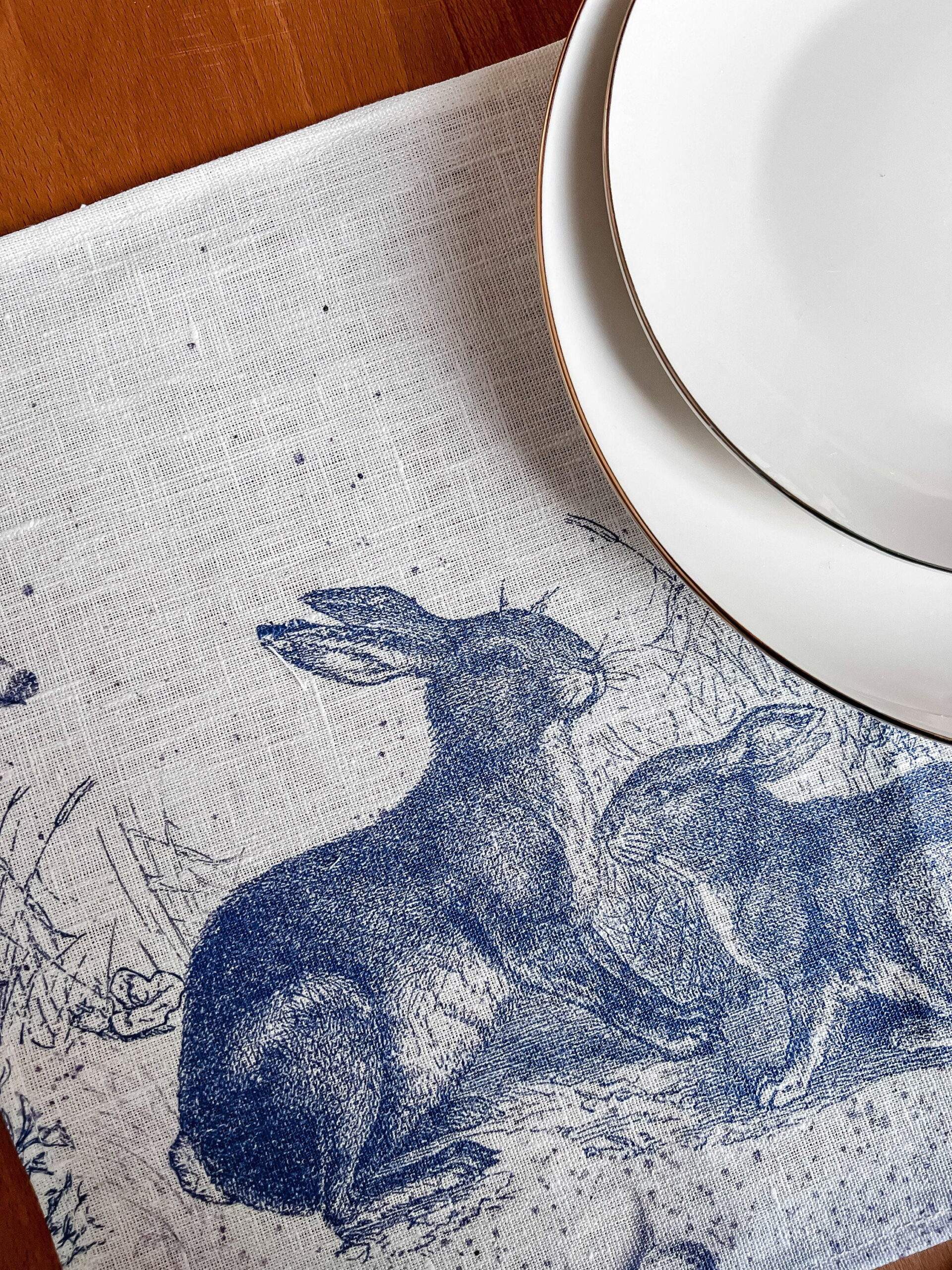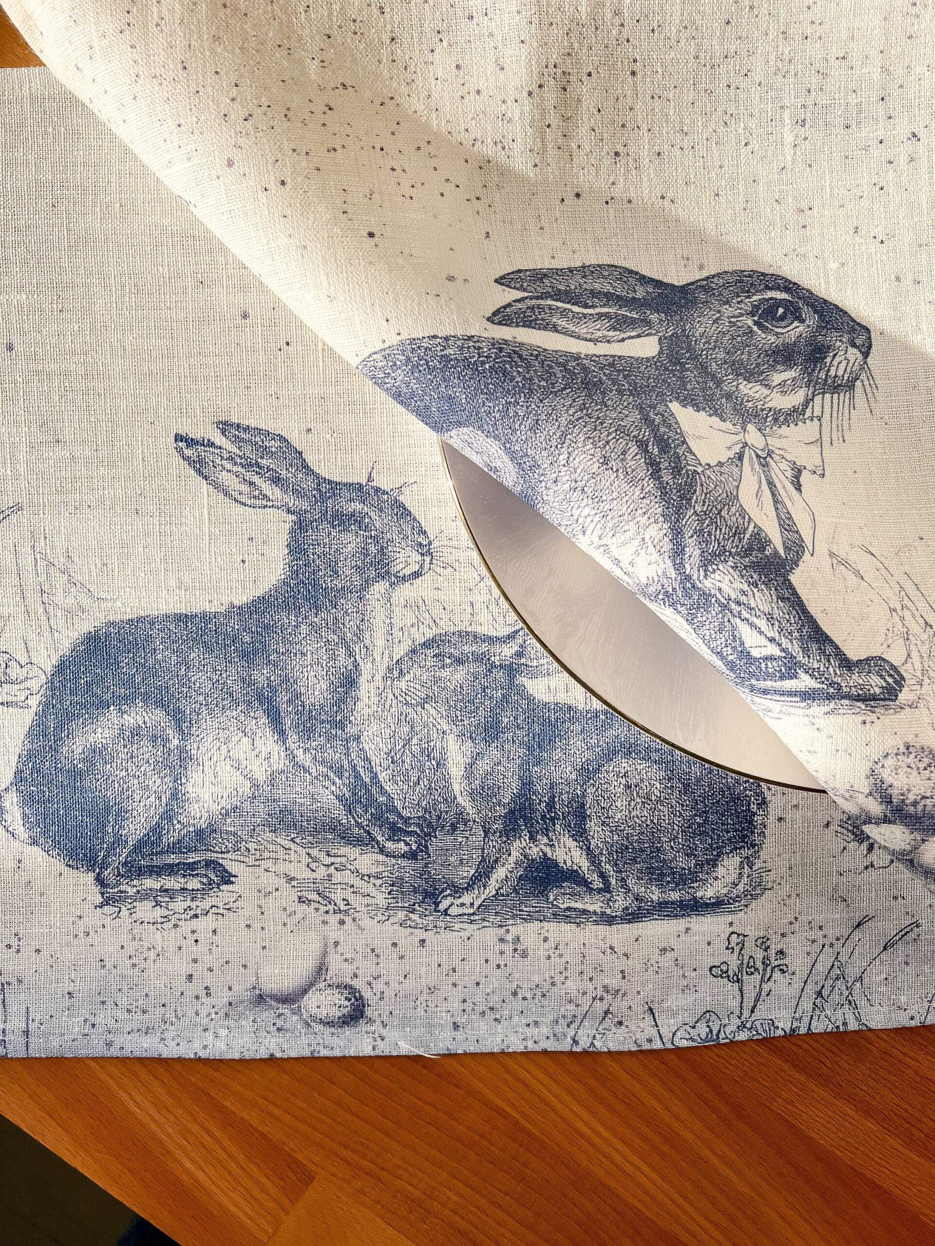Easter placemats, Toile de Jouy Rabbit, linen placemats, Easter table decor, PR0586