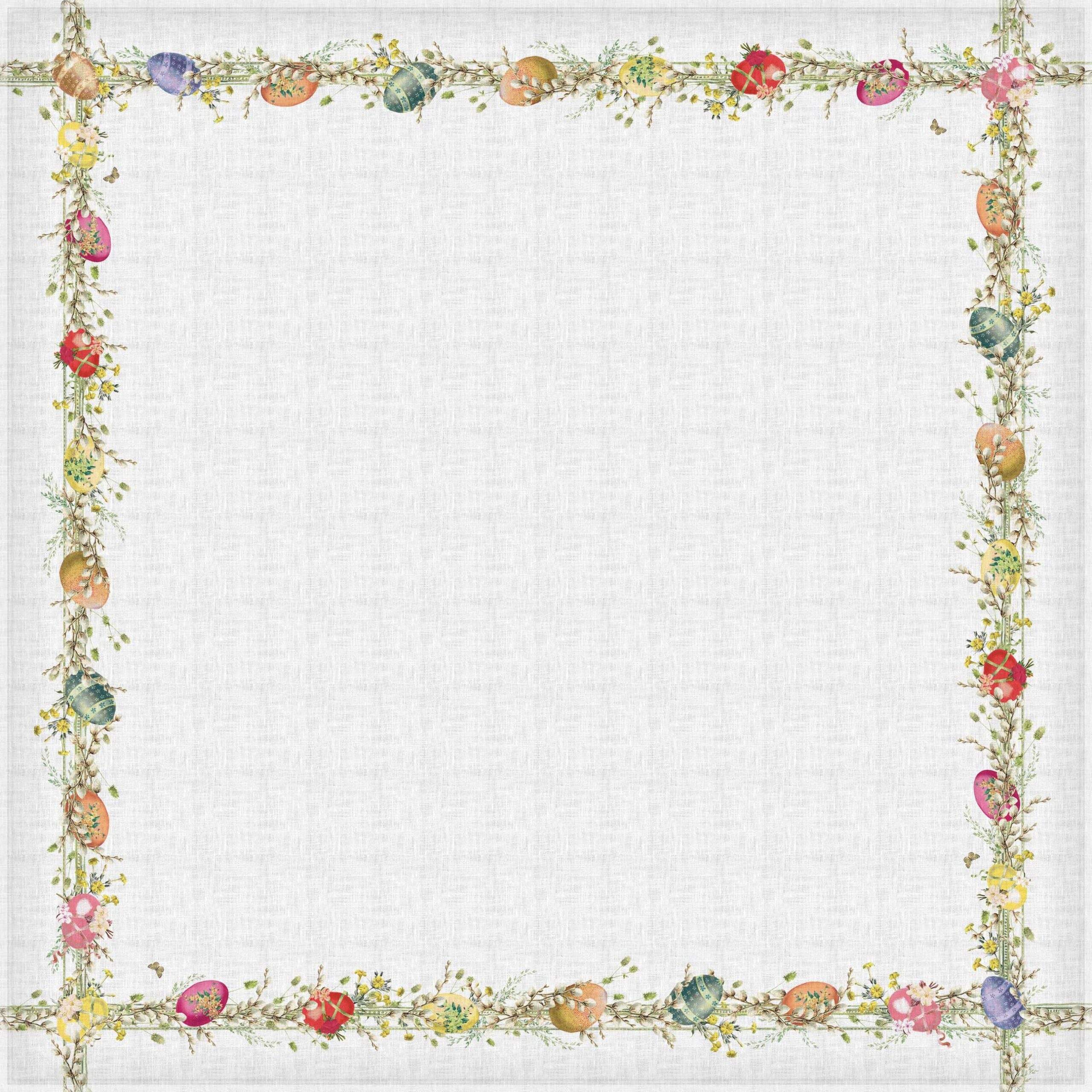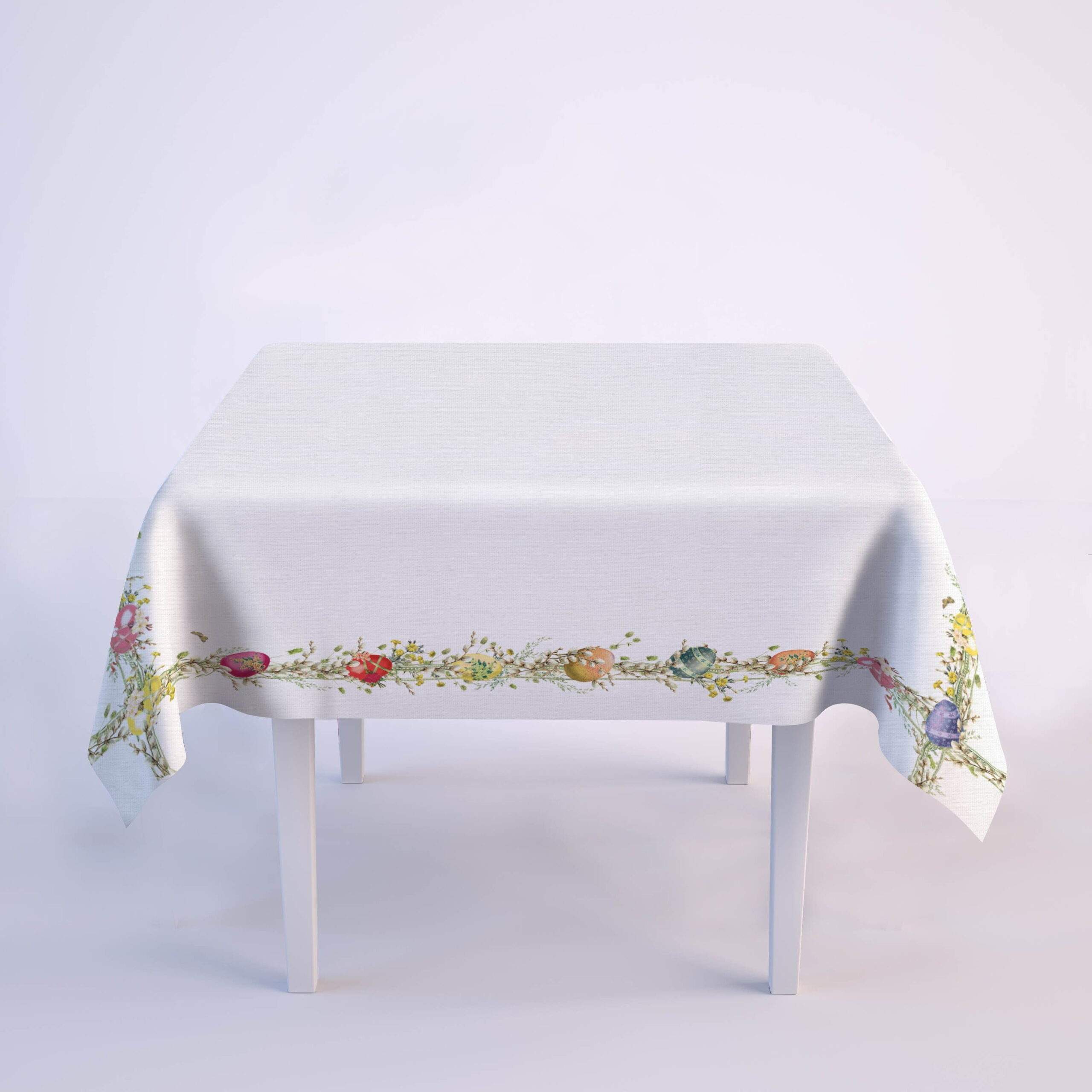 Easter tablecloth “Easter Wreath”. 100% natural linen fabric. Holiday dining room table decor. This tablecloth can be order with matching pattern linen table runners, placemats or napkins sets.