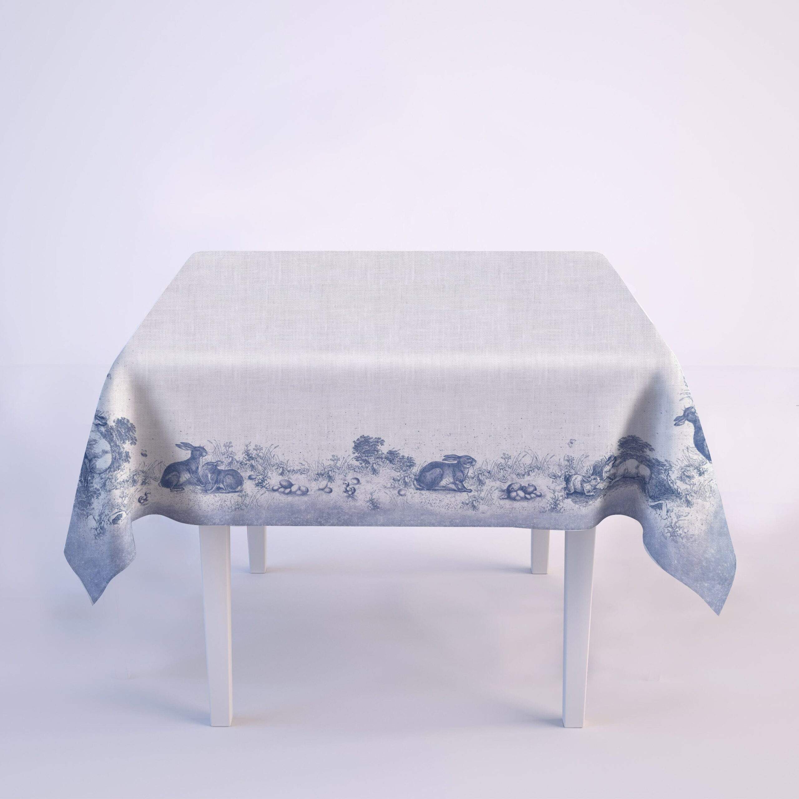 Easter tablecloth Toile de Jouy Rabbit. 100% natural linen fabric. Easter vintage table decor. This tablecloth can be order with matching pattern linen table runners, placemats or napkins sets.