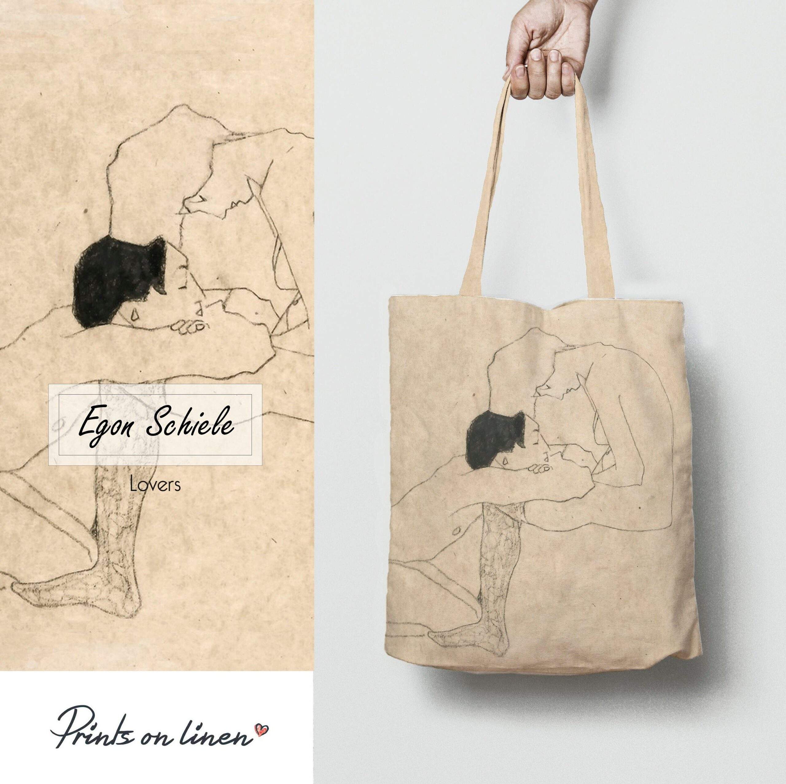 Tote bag canvas Egon Schiele “Lovers”. Egon Schiele was an Austrian painter. A protégé of Gustav Klimt, Schiele was a major figurative painter of the early 20th century.