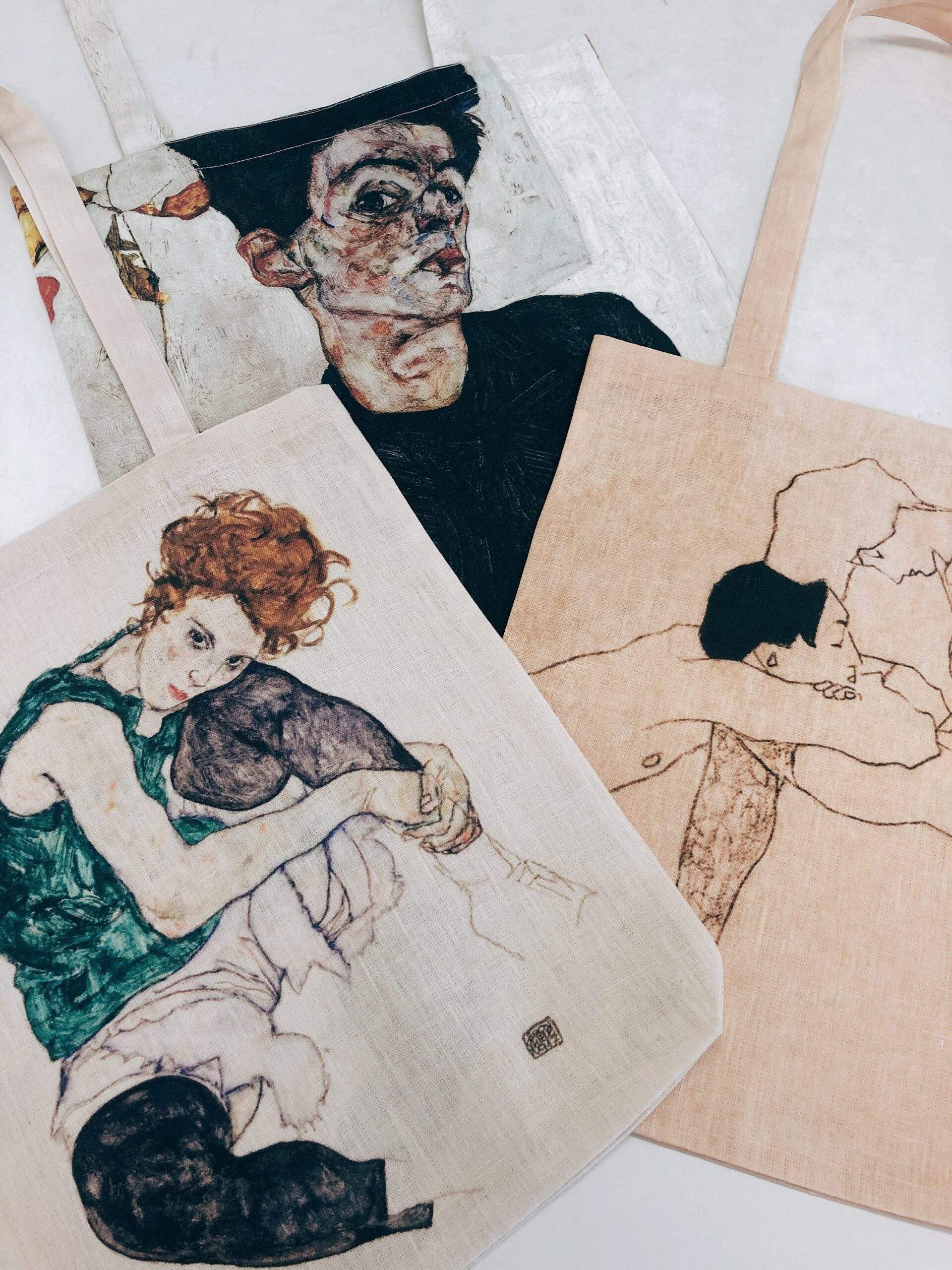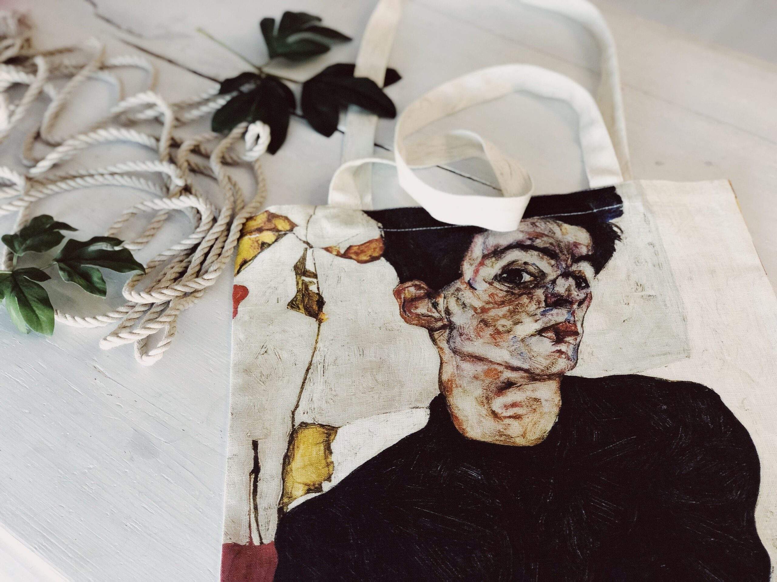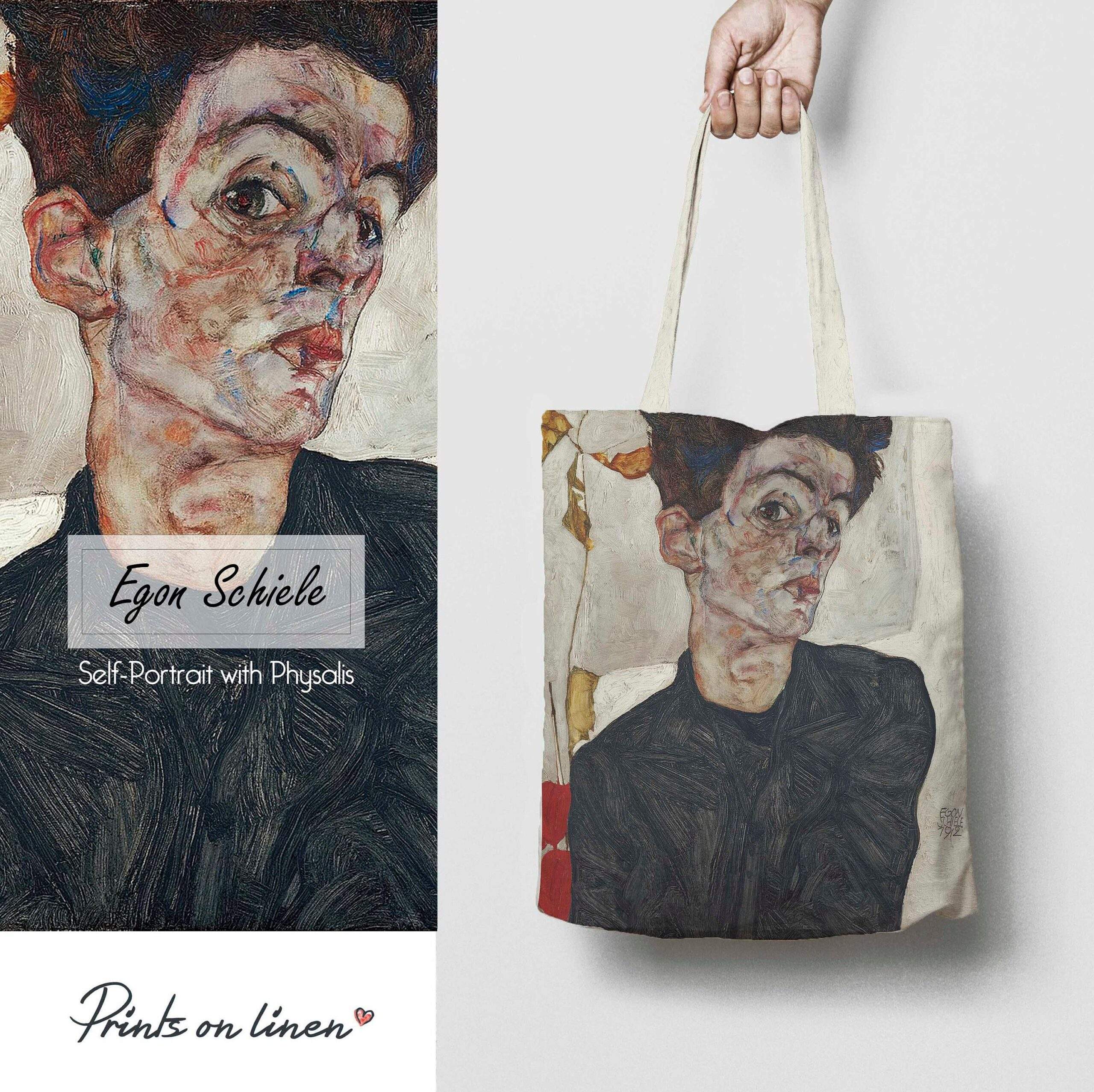 Tote bag canvas Egon Schiele “Self-portrait with Physalis”. Egon Schiele was an Austrian painter. A protégé of Gustav Klimt, Schiele was a major figurative painter of the early 20th century.