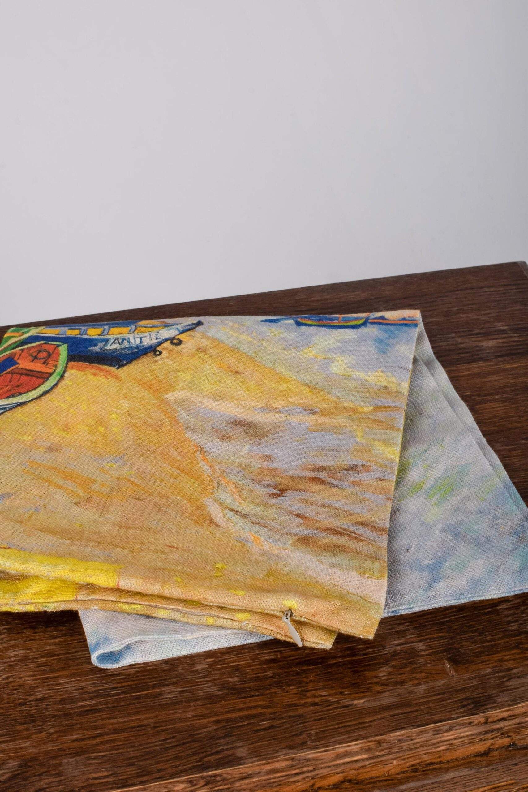 Cushion cover Fishing Boats On The Beach, 1888 by Vincent Van Gogh.