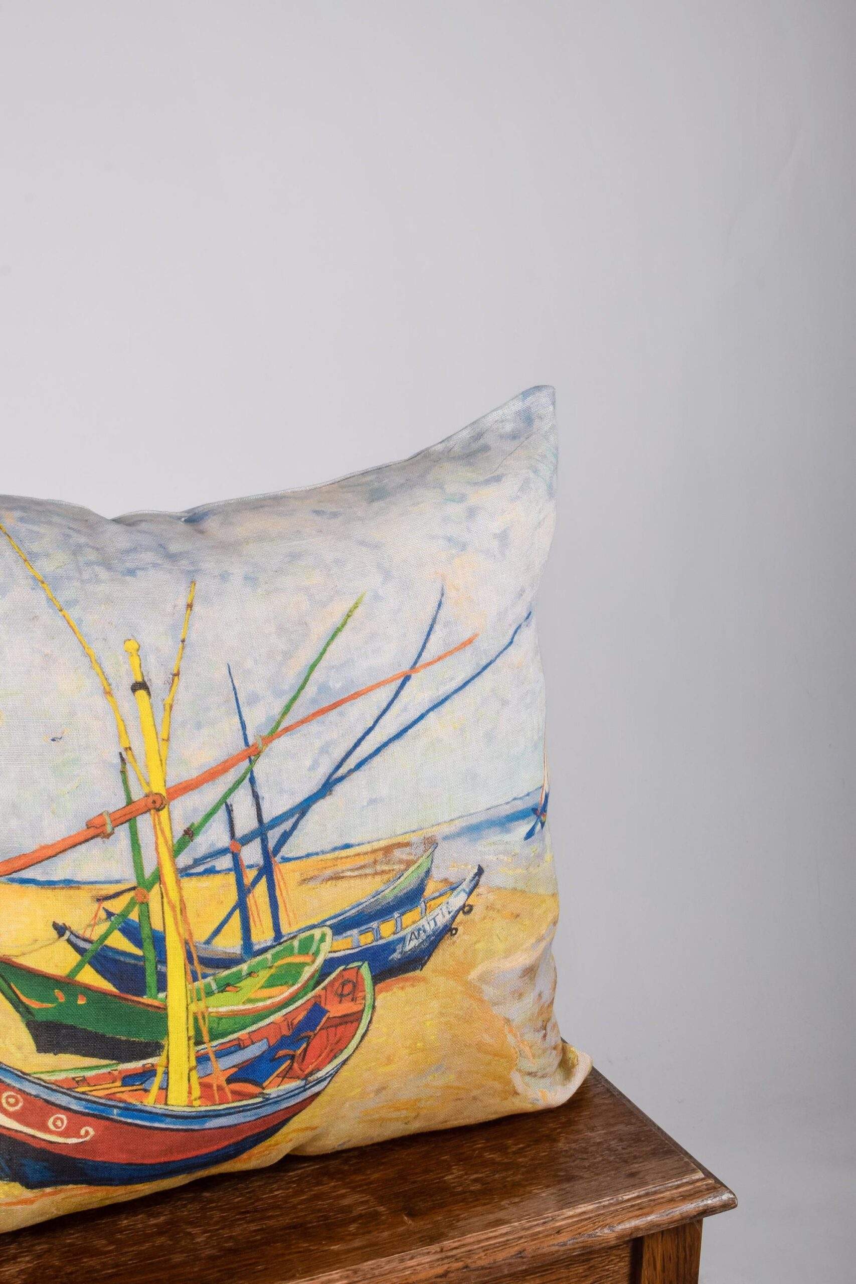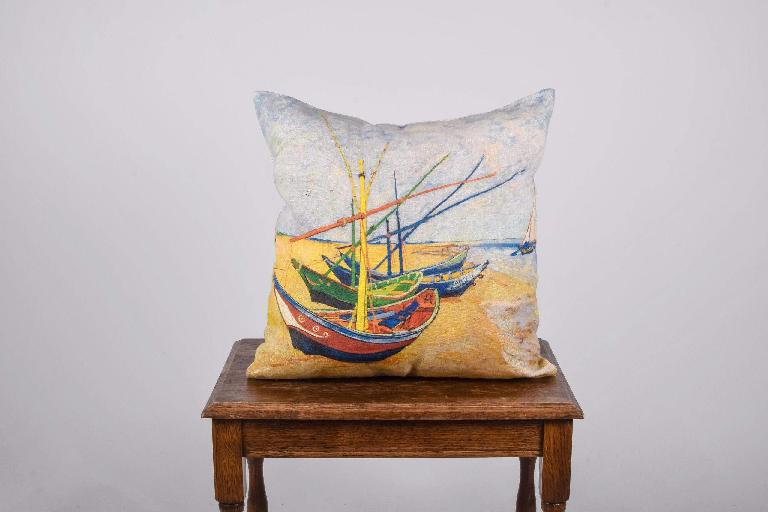 Fishing Boats On The Beach, 1888 by Van Gogh, Cushion cover, Linen pillow, PR0866