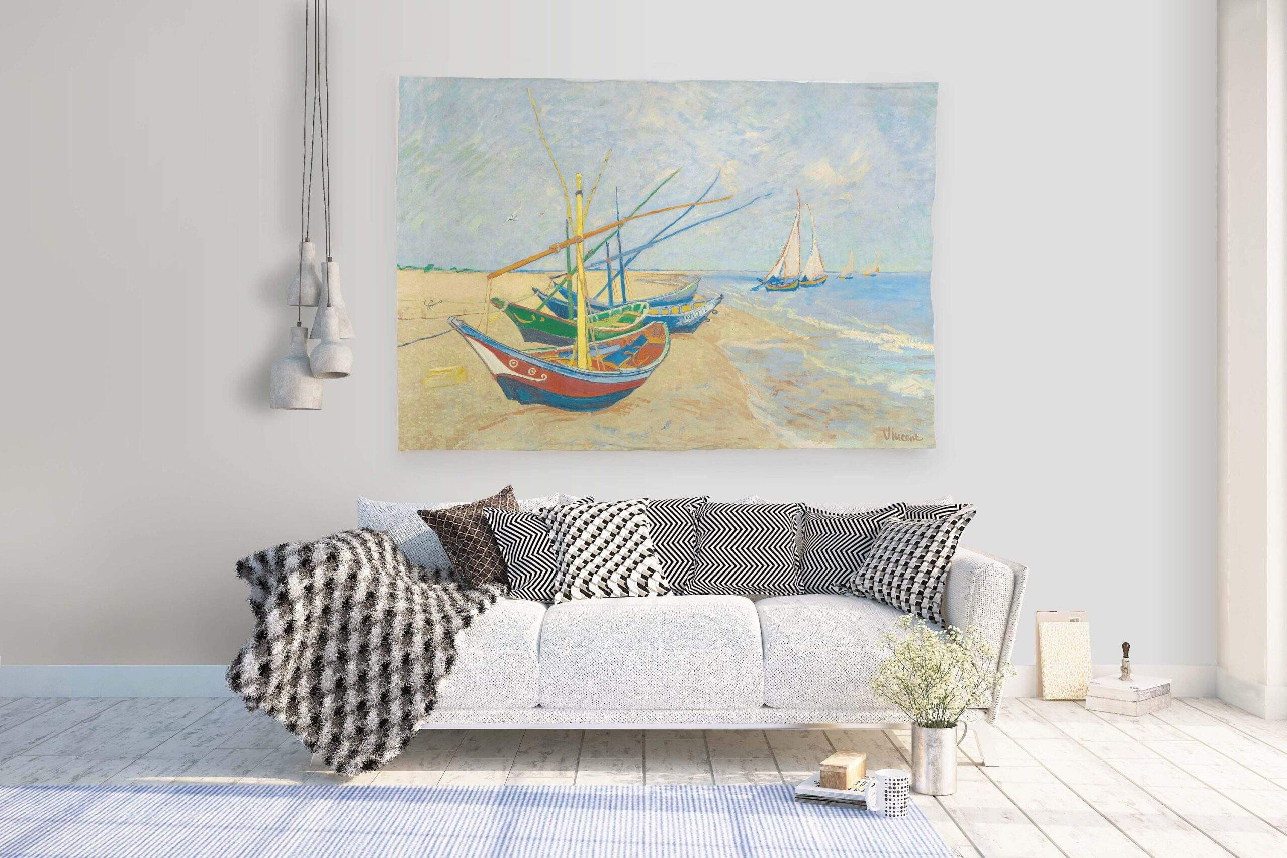 Wall tapestry “Fishing Boats On The Beach”, 1888 by Van Gogh.
